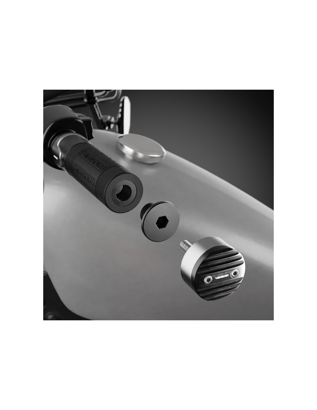 Observación: En algunos modelos de motos Harley-Davidson, los retrovisores de manillar HIGHSIDER CON intermitentes LED integrados PUEDEN no ser adecuados. Los retrovisores de manillar con intermitentes LED también pueden montarse en manillares originales Harley-Davidson – omitiendo el casquillo de expansión – con el kit adaptador. Si el retrovisor del extremo del manillar no puede enroscarse lo suficiente en el manillar, habrá demasiado espacio entre el manillar y el accesorio.