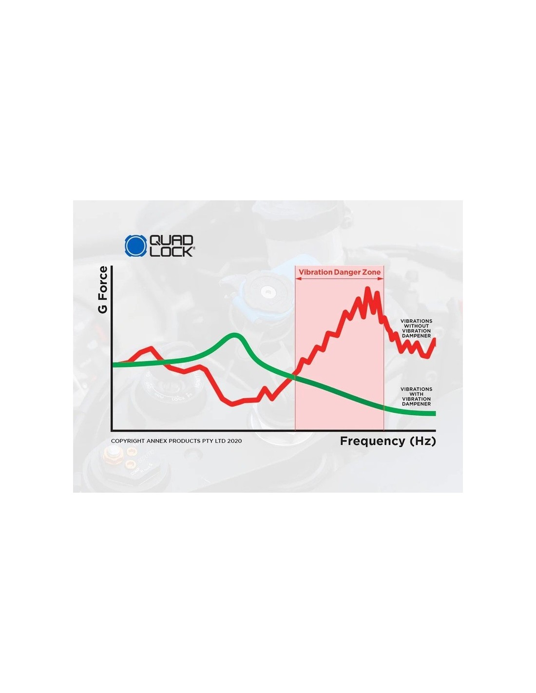 El nivel de vibración de algunas motocicletas puede afectar la estabilización de imagen en los nuevos smartphones. El Amortiguador de Vibraciones Quad Lock garantiza que puedas montar tu smartphone en cualquier motocicleta con confianza.