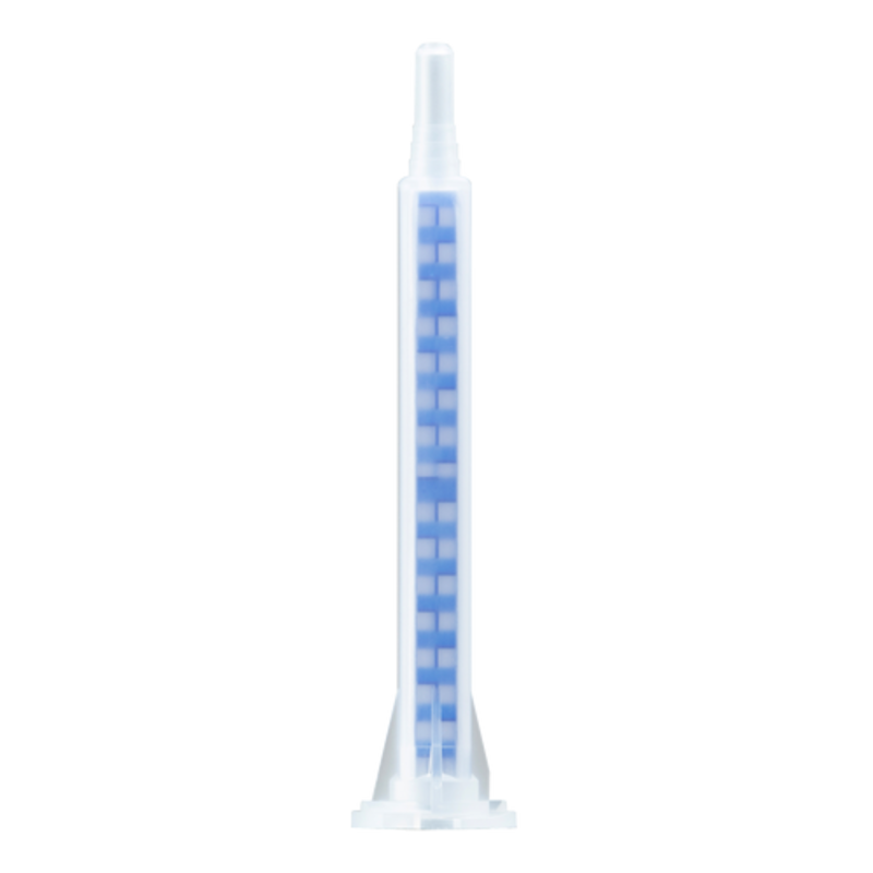 Mezclador de plástico con 20 elementos para una mezcla óptima de los dos componentes sin inclusiones de aire.