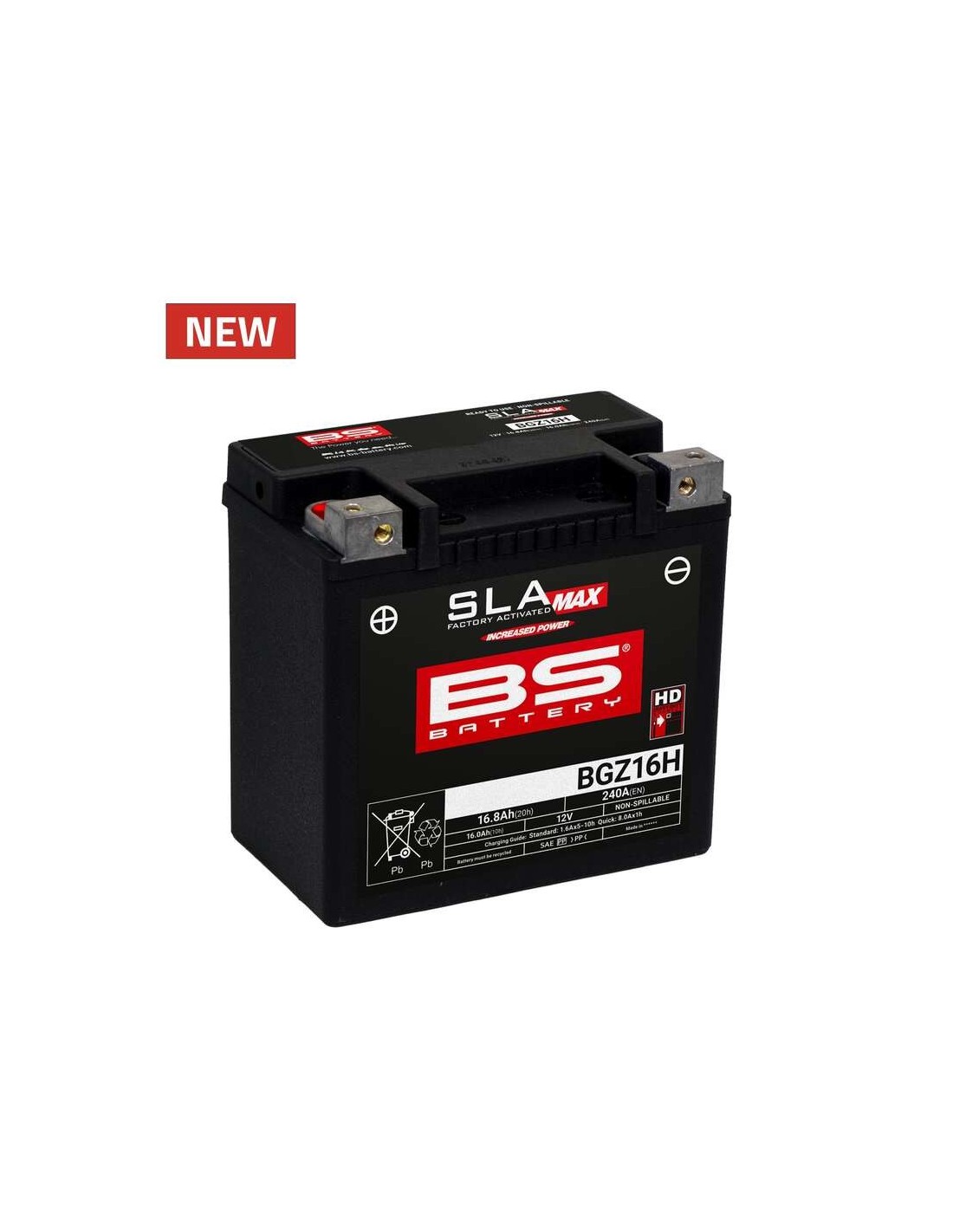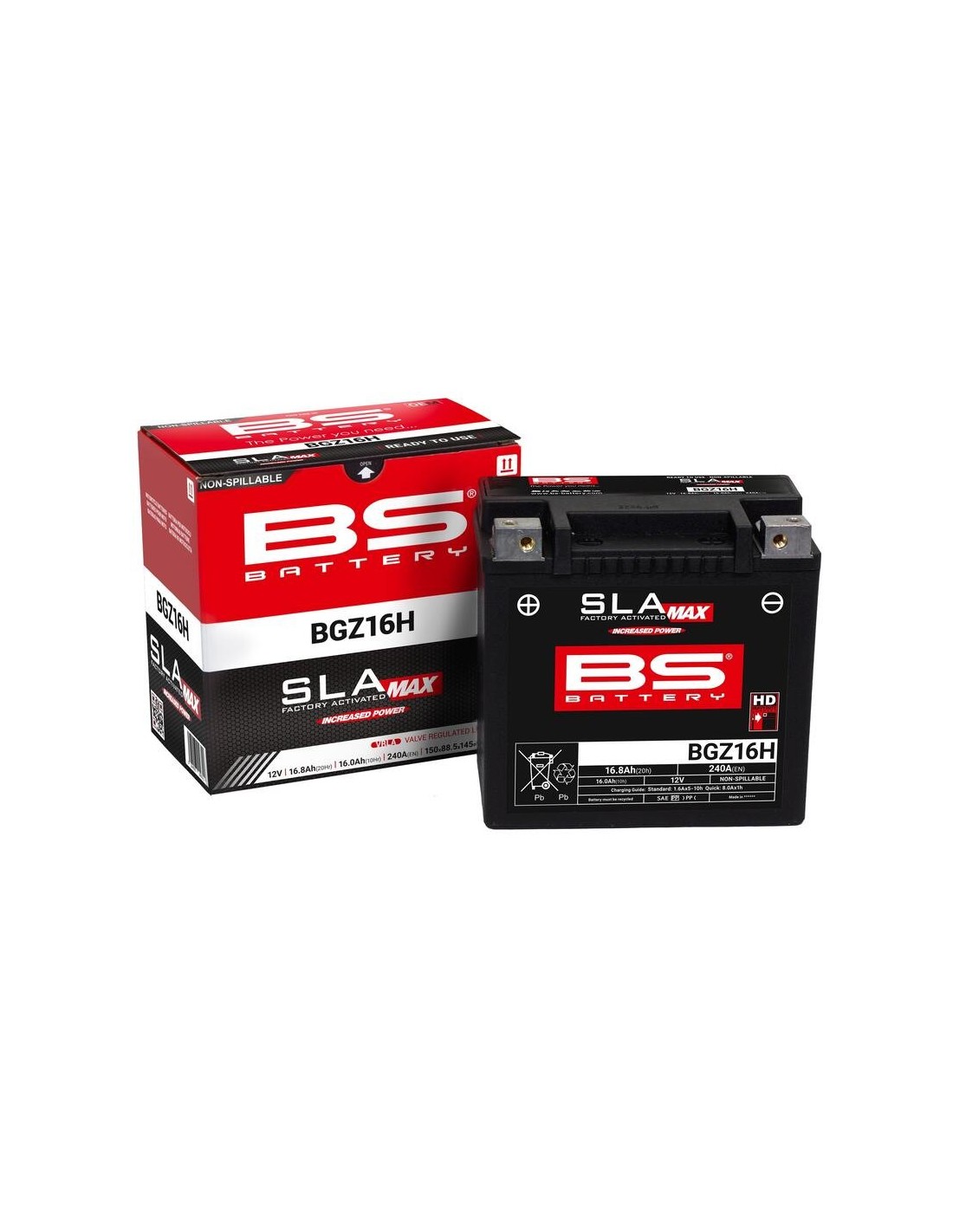 Lista para usar, 100% libre de mantenimiento y no derramable, esta batería BGZ16H proporciona la máxima fiabilidad y la mayor capacidad de arranque a todos los motores de gran potencia.