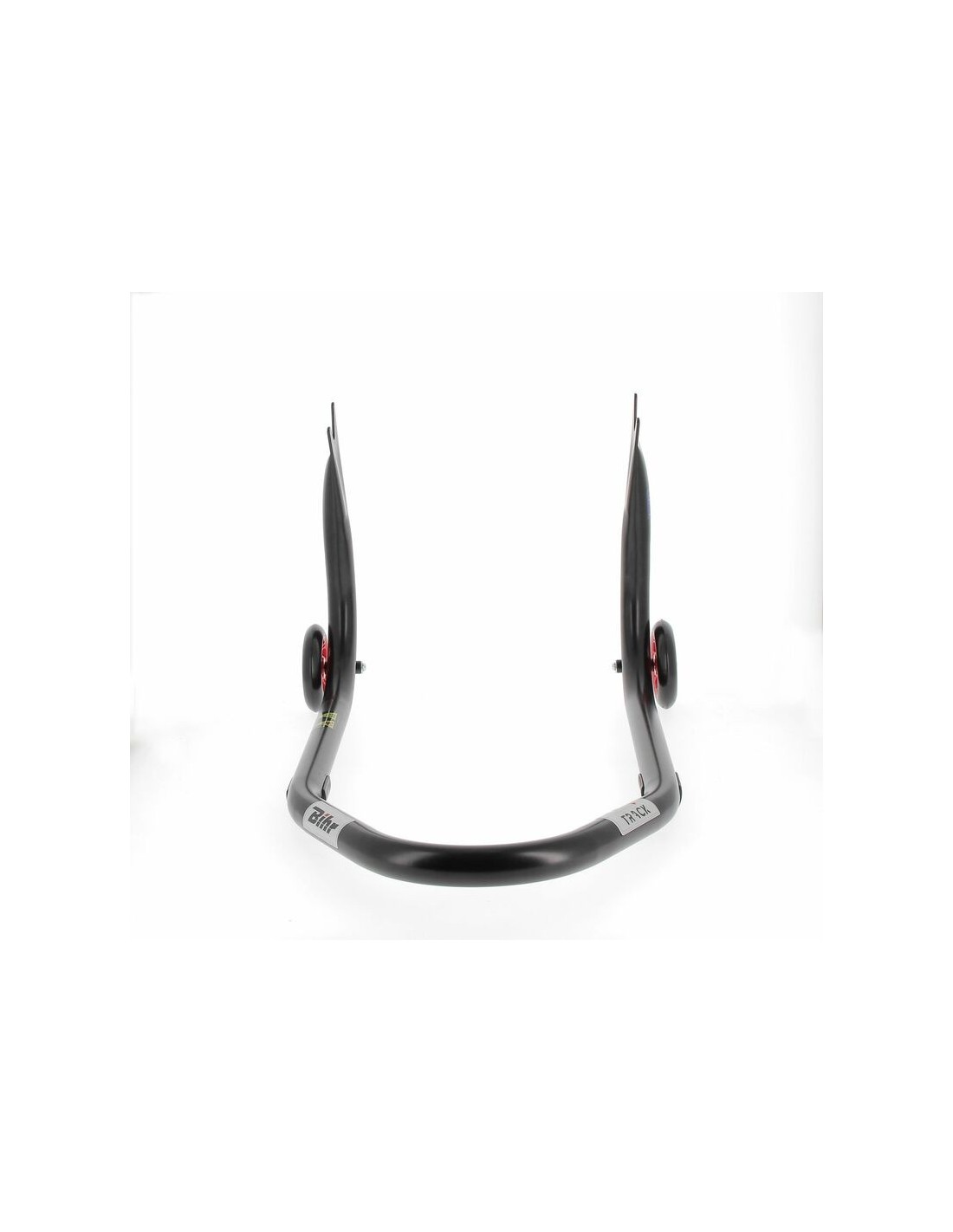 Caballete trasero BIHR Home Track soporte en "V" para diábolos, color negro mate ruedas rojas