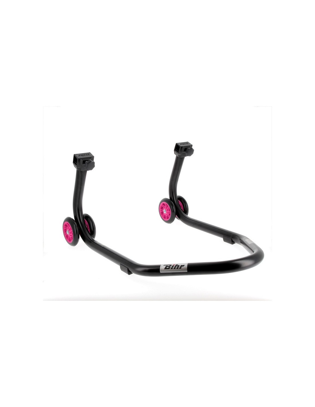 Caballete trasero BIHR Home Track soporte en "L" color negro mate y ruedas rosas