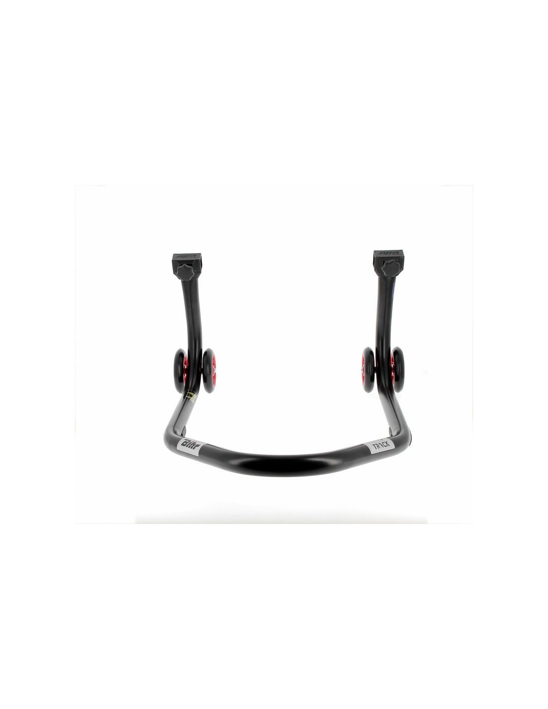 Caballete trasero BIHR Home Track soporte en "L" color negro mate y ruedas rojas