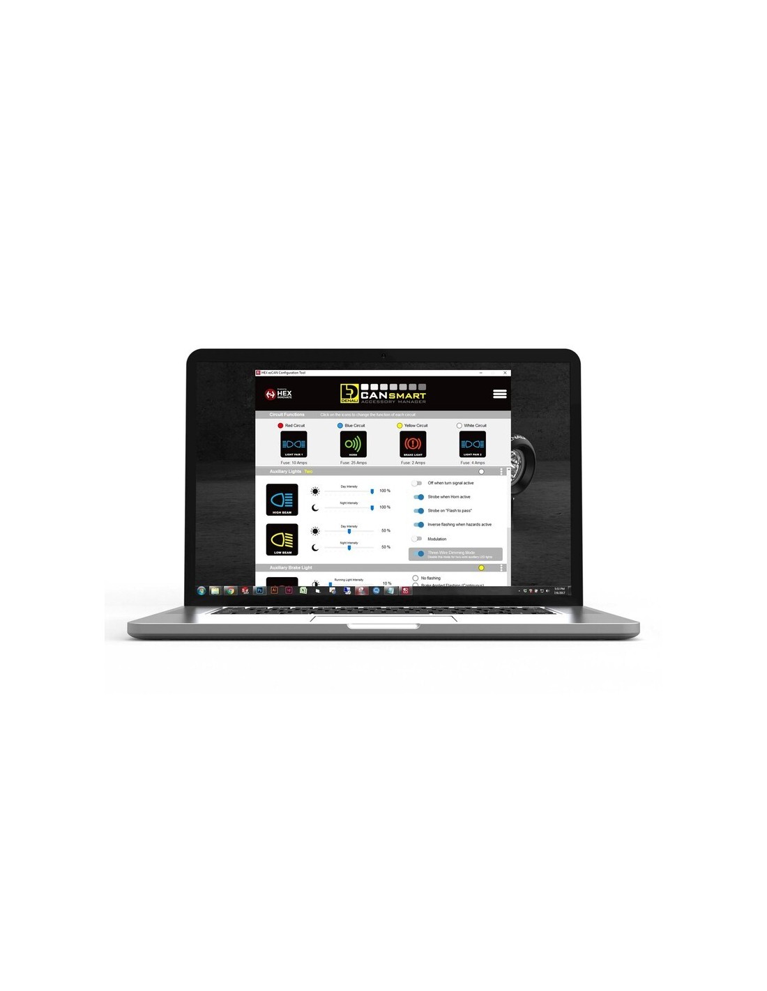 - Frenado de patrón intermitente - El CANsmart™ proporciona cuatro patrones de destello diferentes que hacen que nuestras luces de freno auxiliares superbrillantes sean incluso perceptibles para los automovilistas detrás de usted. Puede configurar las luces de freno auxiliares para que parpadeen solo cuando se frena con fuerza, parpadeen continuamente cuando se aplica el freno o parpadeen cuatro veces rápidamente y luego se mantengan fijas (velocidad de parpadeo legal de California).