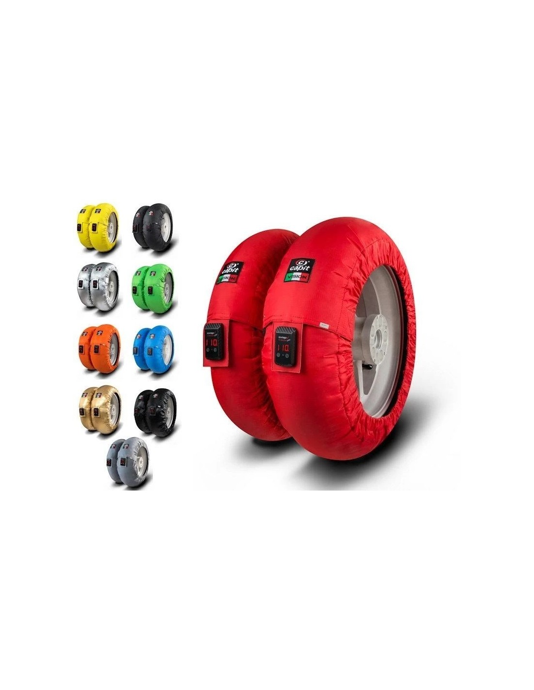 The difference from the competitors is the quality of product and service Capit, 100% made in Italy used by all the top teams MotoGP, Superbike and F1, warranty of three years and guaranteed repair service even out of warranty. Ability to customize the product logo, purchase of spare parts or even a single tyrewarmer.