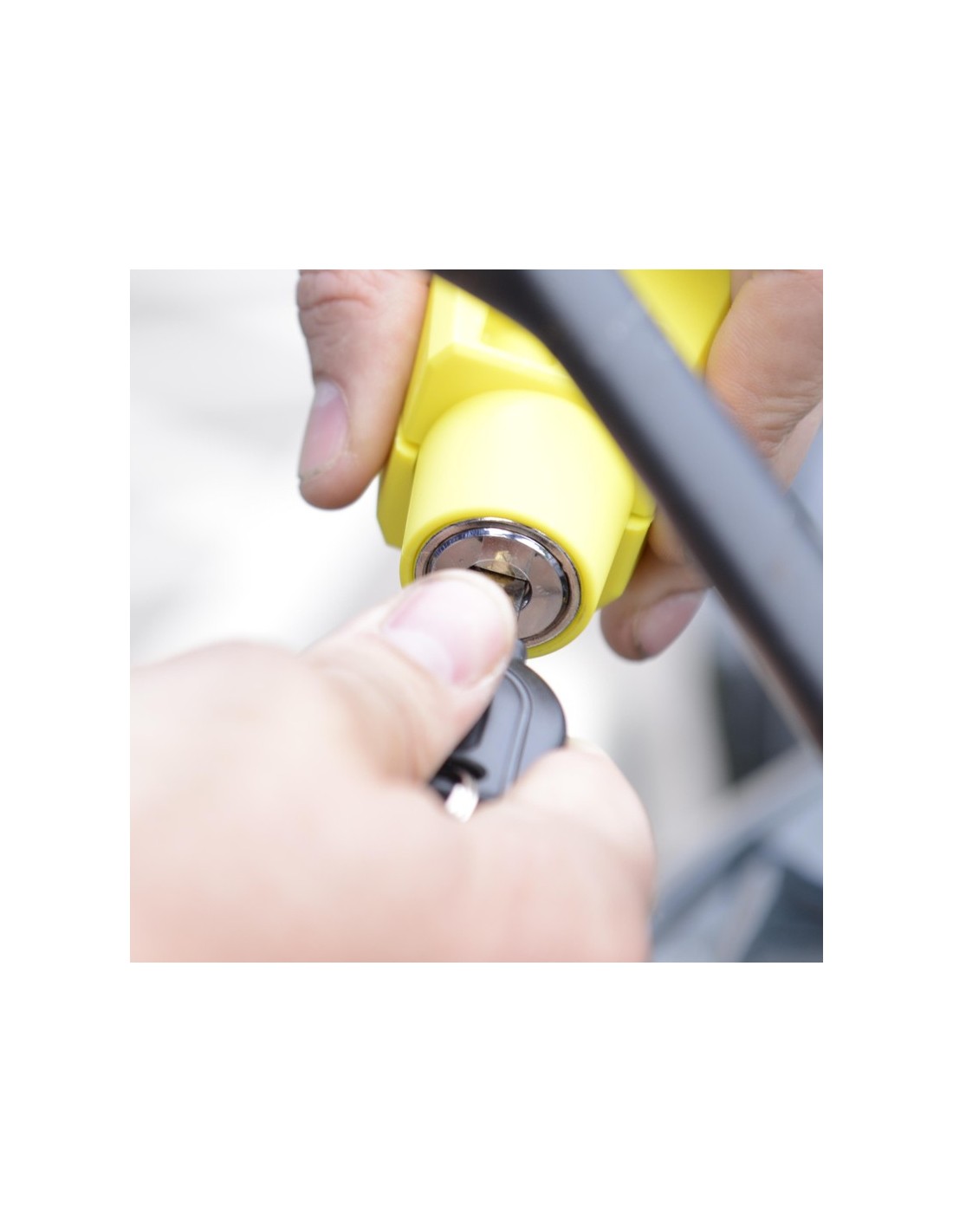 - Highly visible security that immobilises the motorcycle, scooter or ATV