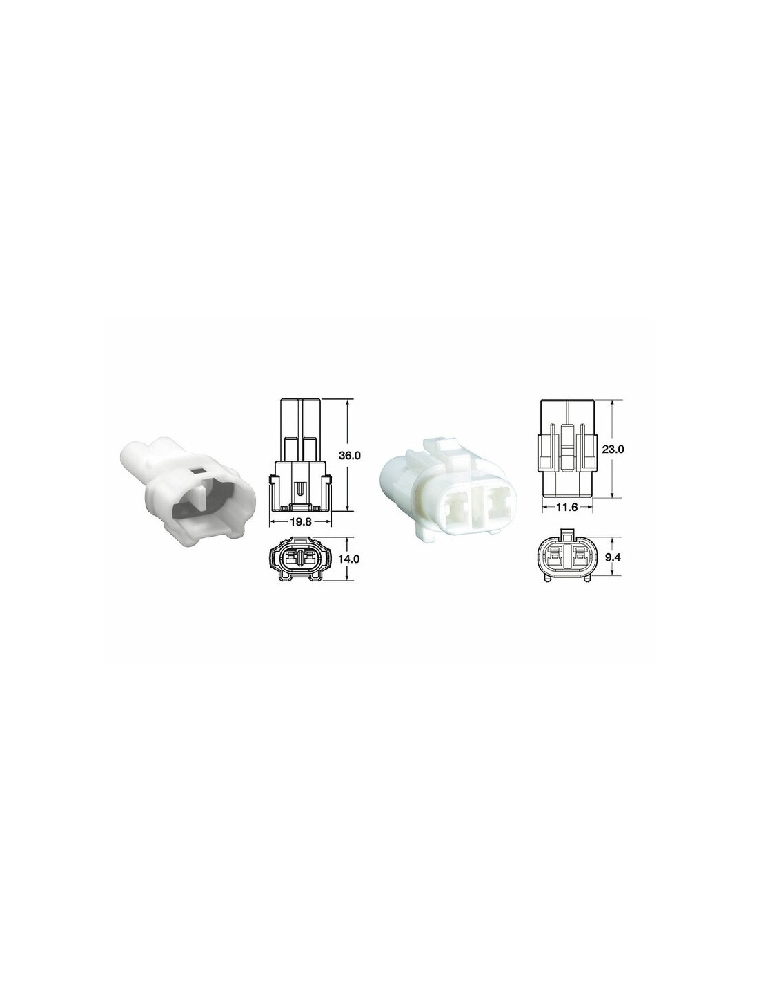 Juego completo (carcasas, cierres y juntas) de cinco terminales, estancos, de tipo OEM.Datos técnicos:Terminales macho y hembra de latón preestañado.Juntas de silicona. Temperatura operacional: -40°C /+120°C.Caída de tensión: 3 mV/AResistencia de aislamiento: 100 MO.Resistencia dieléctrica: 1000 VSección del cable: 0'85 mm² / 1'25 mm².Corriente eléctrica máxima: 13 ATipo 090 SMTO MT