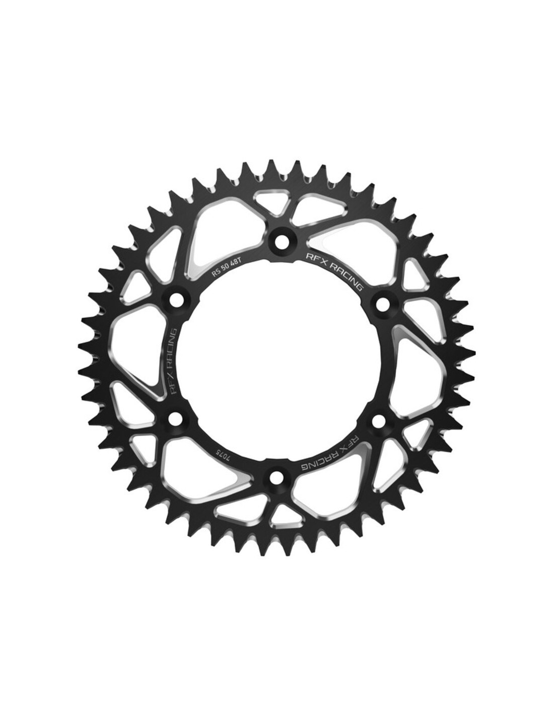 Las coronas RFX Pro están mecanizadas mediante CNC en aluminio aeroespacial 7075 e incorporan ranuras para limpiar el barro y alargar la vida de la cadena y la corona.