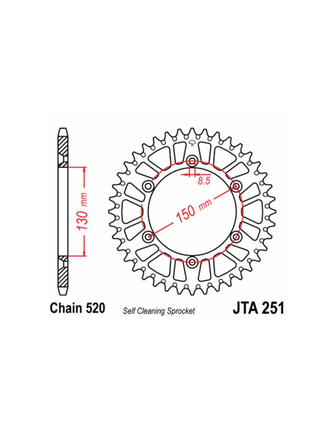 - Sprocket with "Anti-mud" finish which facilitates the projection of the particles, for a better transmission