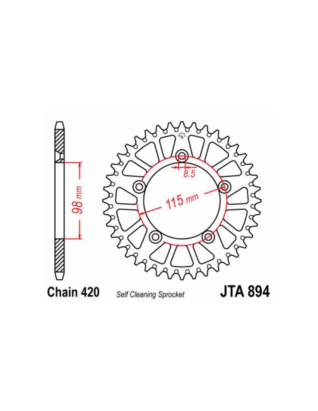 Corona JT SPROCKETS aluminio ultraligera autolimpiable 894 - Paso 420