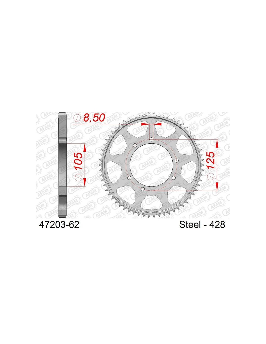 Las coronas de acero AFAM se mecanizan a partir de acero C45, y luego se tratan para obtener una mayor dureza e incluso resistencia. La alta calidad del proceso de fabricación y la precisión del corte han convertido a AFAM en uno de los líderes mundiales en piezas de transmisión para motocicletas.