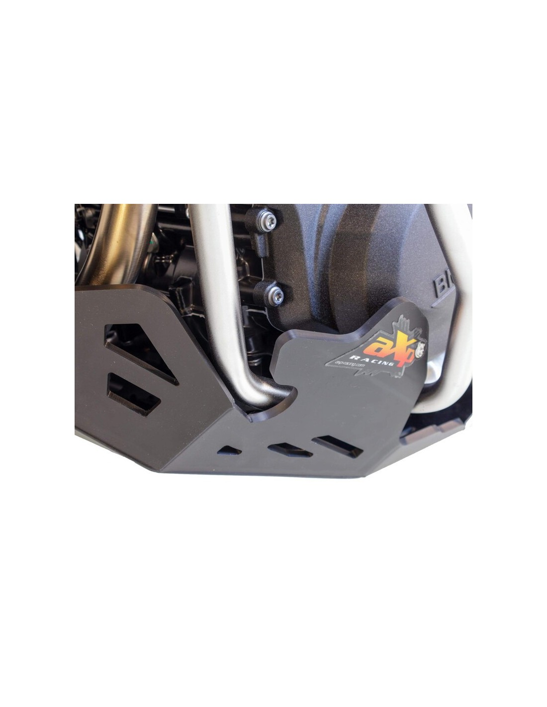 Weight: 2.8Kg - Made from 8mm-thick high-density polyethylene plastic, this skid plate offers a complete protection of the engine block, exhaust, water pump and crankcases, including compatibility with BMW crash bars. The front and rear mounting systems are bolted directly to the engine block, with a wedge system for added strength. 8mm thick foams are placed on each side of the skid plate to prevent friction, and on the block under the engine to absorb shocks.