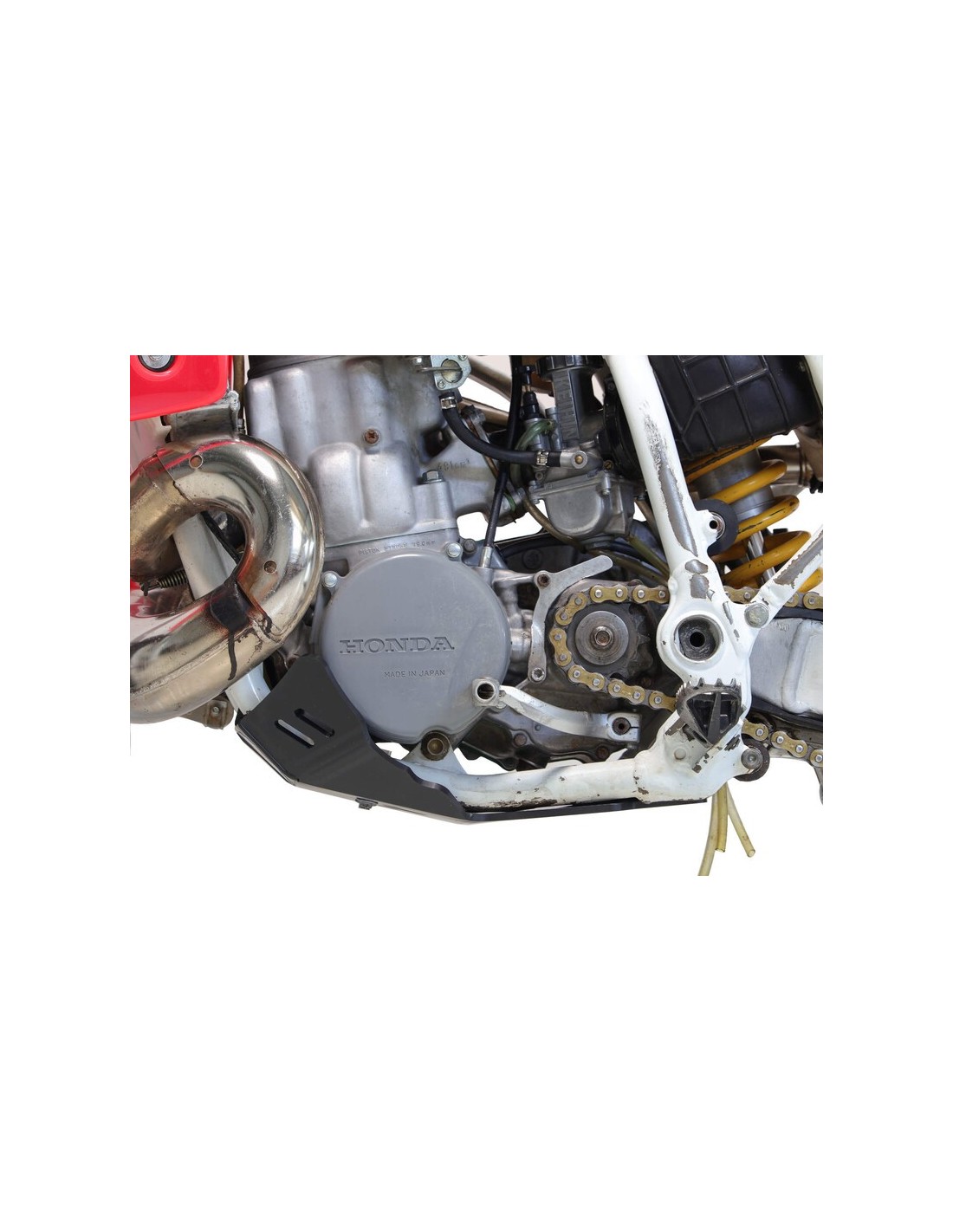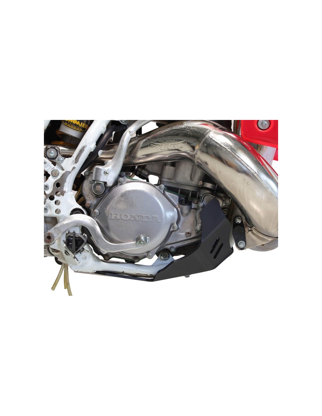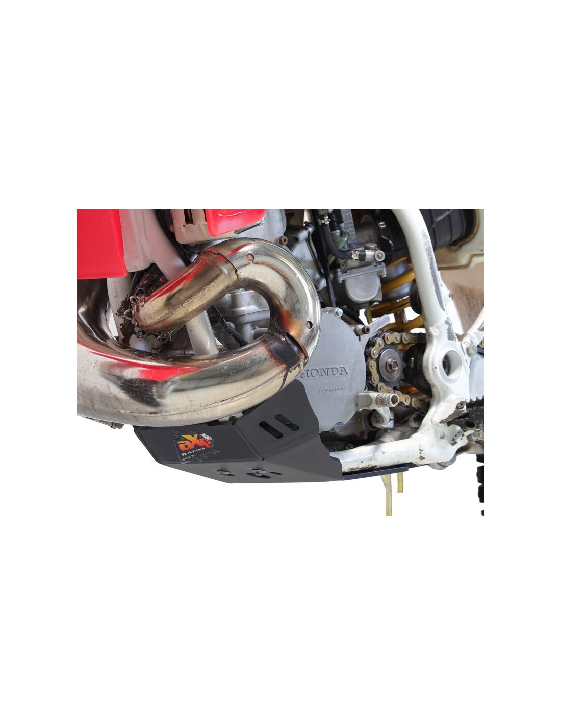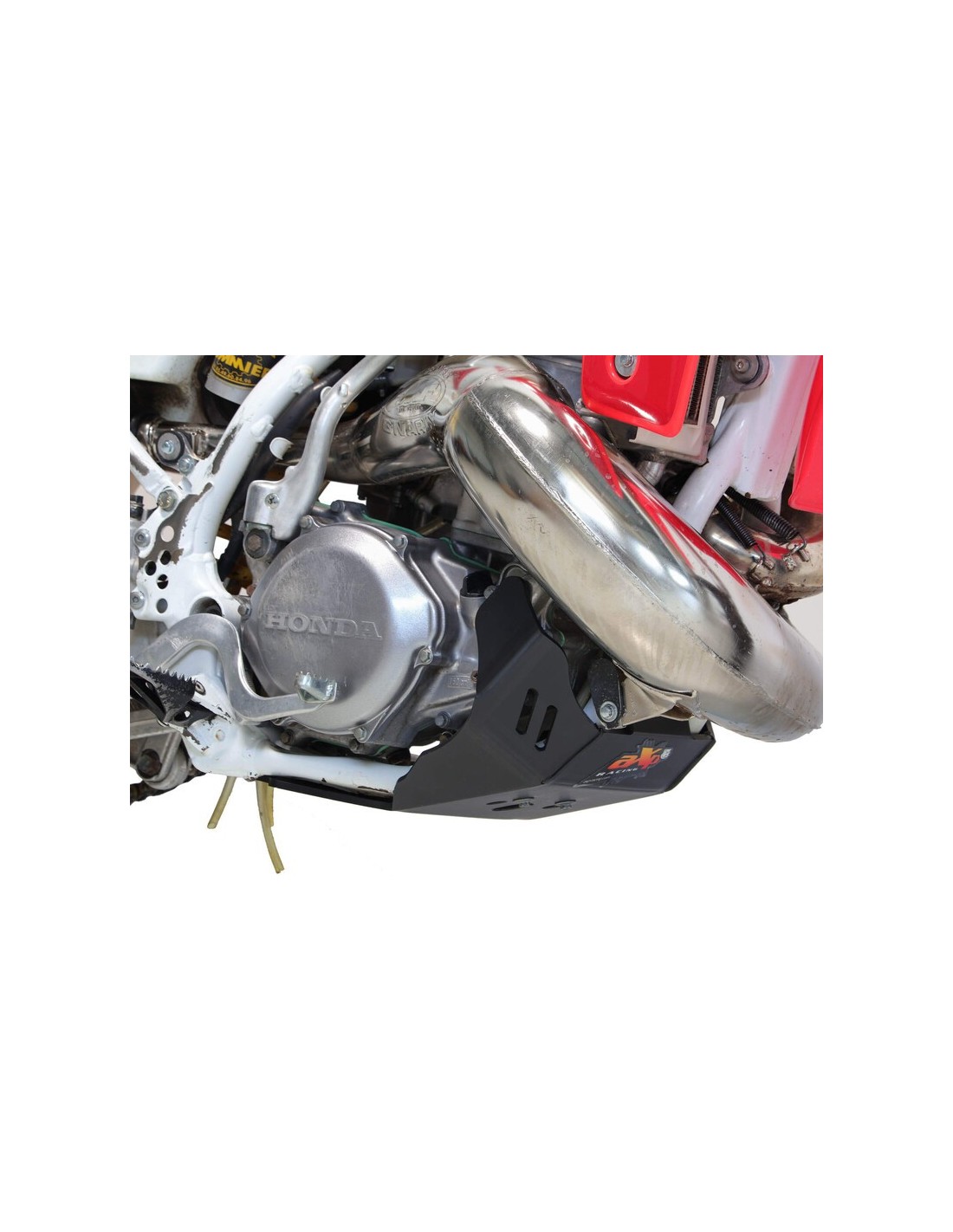 The HDPE AXP plastic skid plate is designed for motocross, supercross and classic enduro use. Made of 6mm thick polyethylene, it covers the underside of the frame, protects the engine and crankcases from projections. Unlike aluminum, the HDPE absorbs impacts, does not undergo deformations, does not generate vibrations and is 40% lighter.
