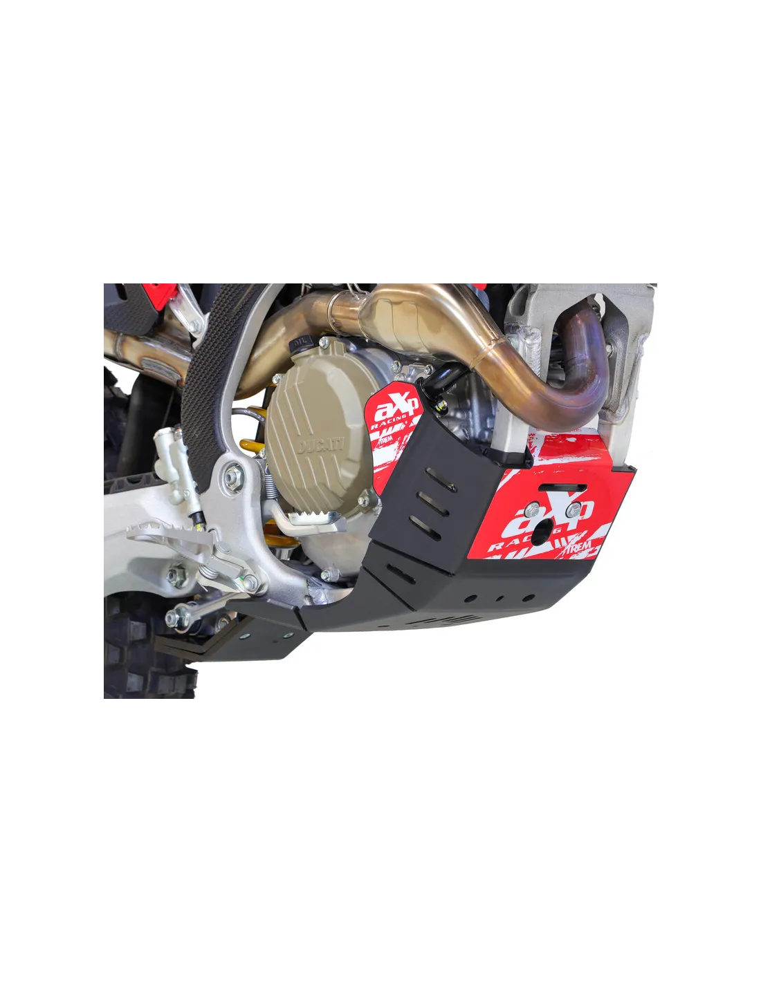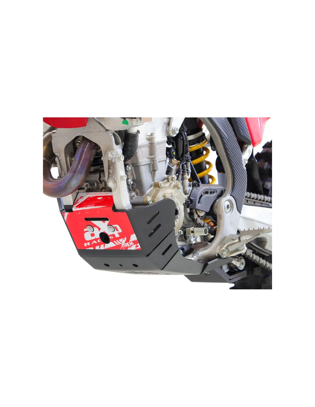 - Developed by AXP, this skid plate offers maximum protection for the engine, frame and swingarm guard thanks to a combination of robust 8 mm thick HDPE plastic and a precise fit. The underride guard not only protects against stone chipping and impact damage, but also protects the chassis thanks to its lightweight design. Ideal for demanding drivers who value both durability and performance. Get this essential protection and drive with confidence - even in the toughest conditions!
