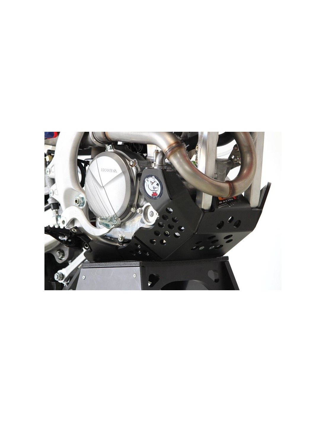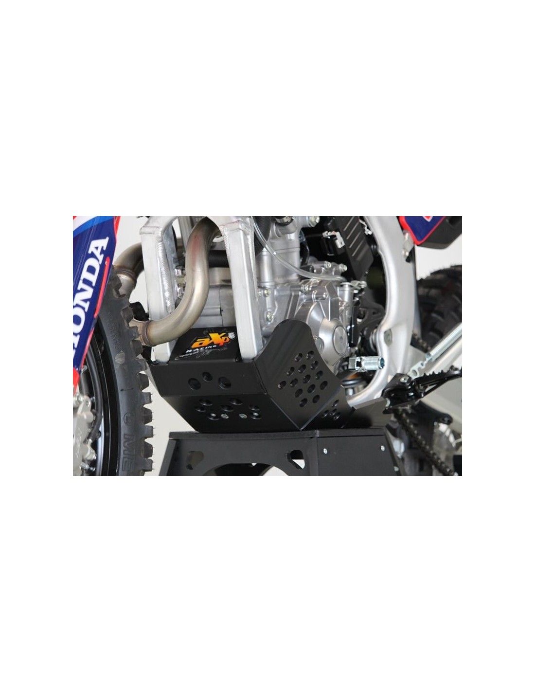 Cubrecarter Honda CRF250R / CRF250RX / CRF300RX Xtrem con protector de bieleta. Peso : 1,5 Kg. Utilizado por el equipo Honda Red Moto en el Campeonato del Mundo de Enduro, el cubrecarter AXP envuelve el chasis hasta la parte inferior de las estriberas, cubre el cárter, protege la bomba de agua y la bieleta. Su diseño permite vaciar el aceite y retirar el filtro de aceite sin necesidad de quitar la placa.
