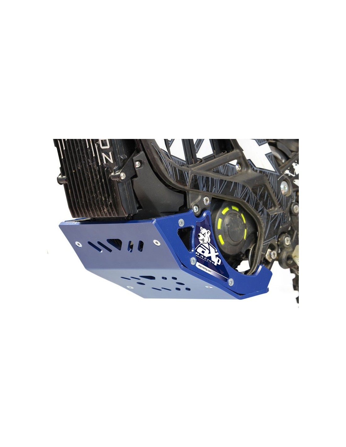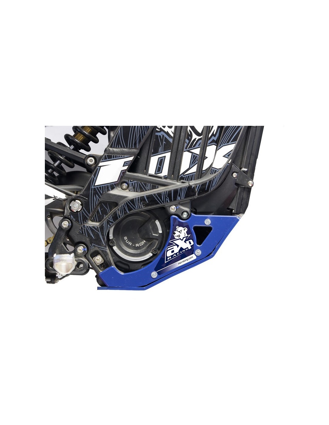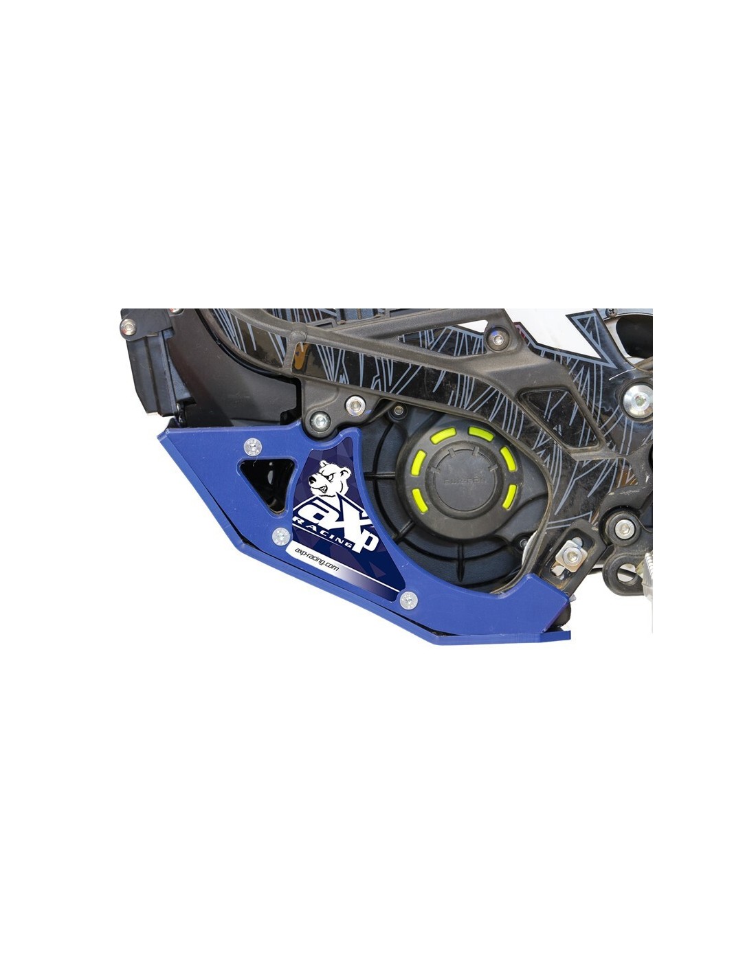 El cubrecárter está formado por dos soportes de 20 mm de grosor, una placa y dos tapas laterales de 6 mm . Los soportes son muy resistentes, la placa permite deslizarse con facilidad en comparación con su equivalente en aluminio . Las cubiertas laterales cubren todo el conjunto, ¡siguiendo las líneas de la máquina!