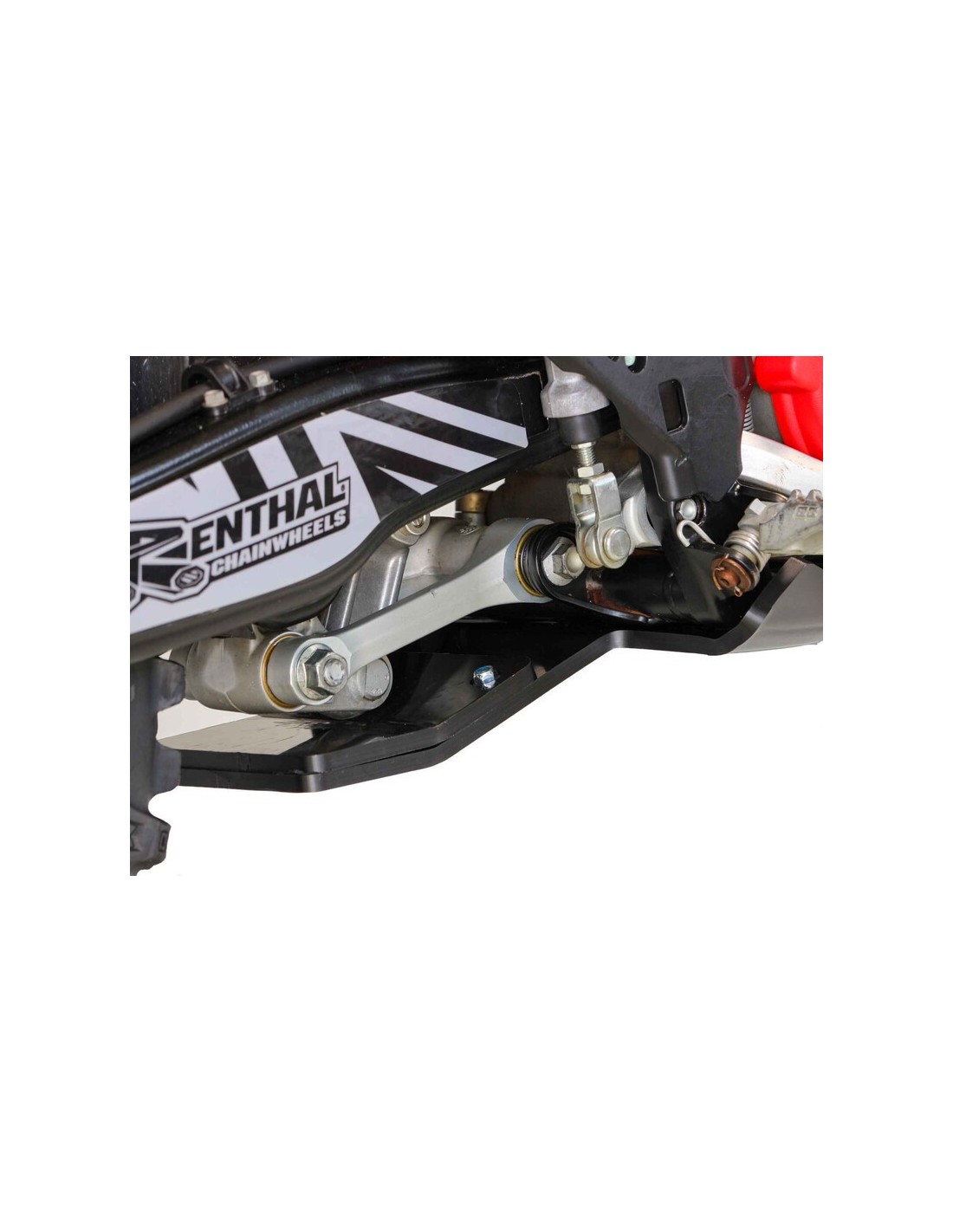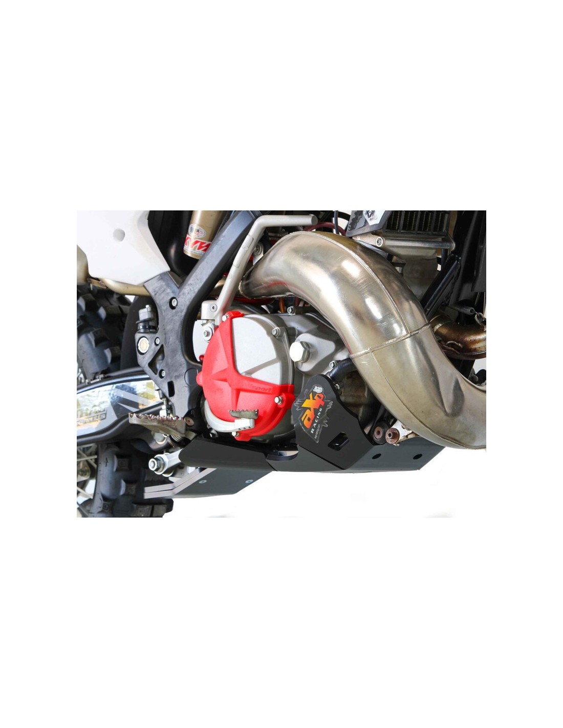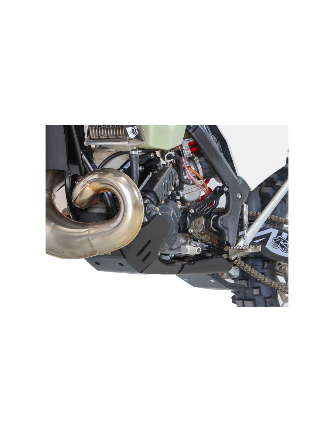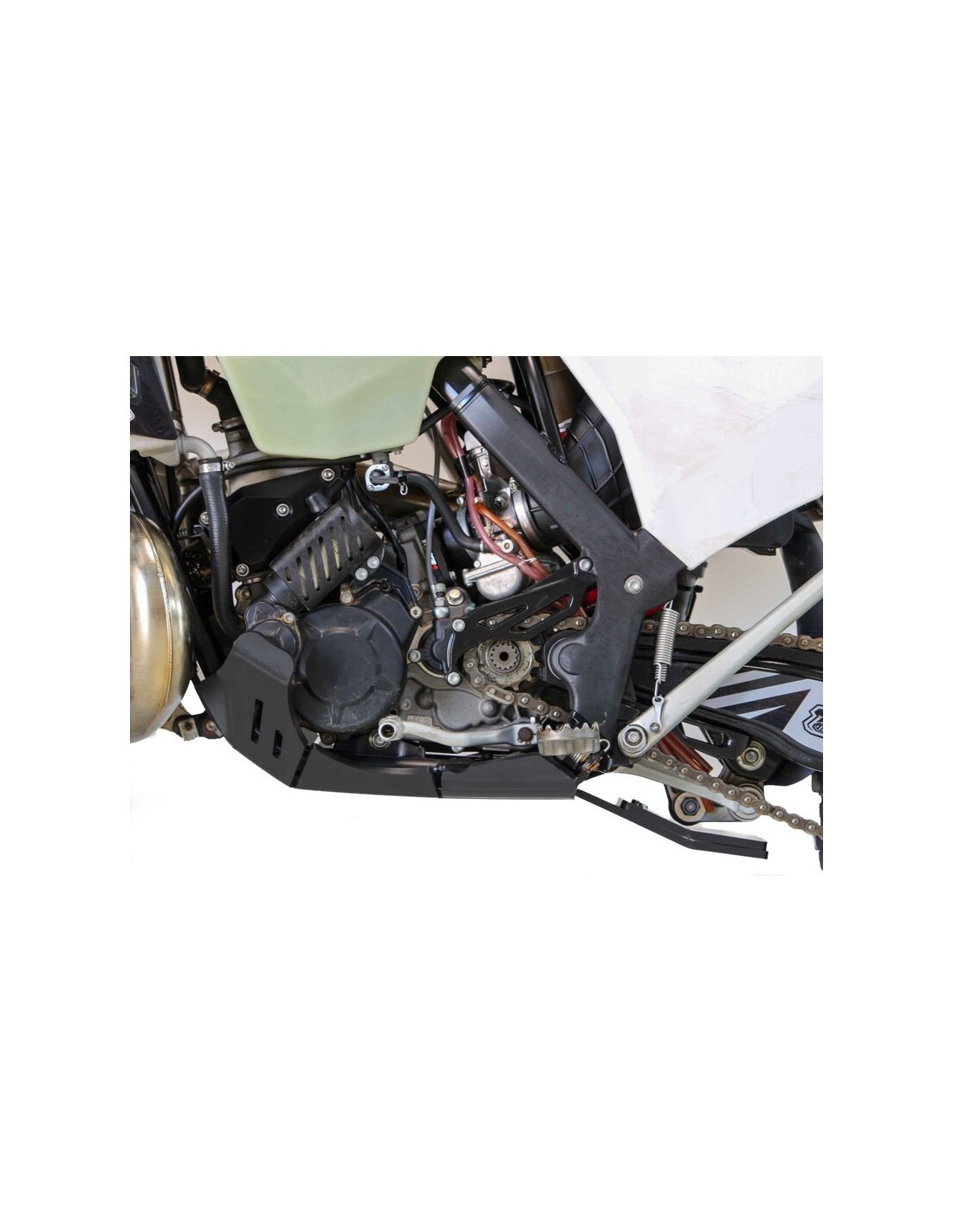 Protección del motor, del chasis, de las carcasas, de la biela, de la bomba de agua y del bastidor hasta los estribos. Incluye un orificio de drenaje. Diseñado en plástico de polietileno de alta densidad de 8 mm de grosor, el cubrecárter es un 30-40 % más ligero que su equivalente de aluminio y más resistente que el carbono.