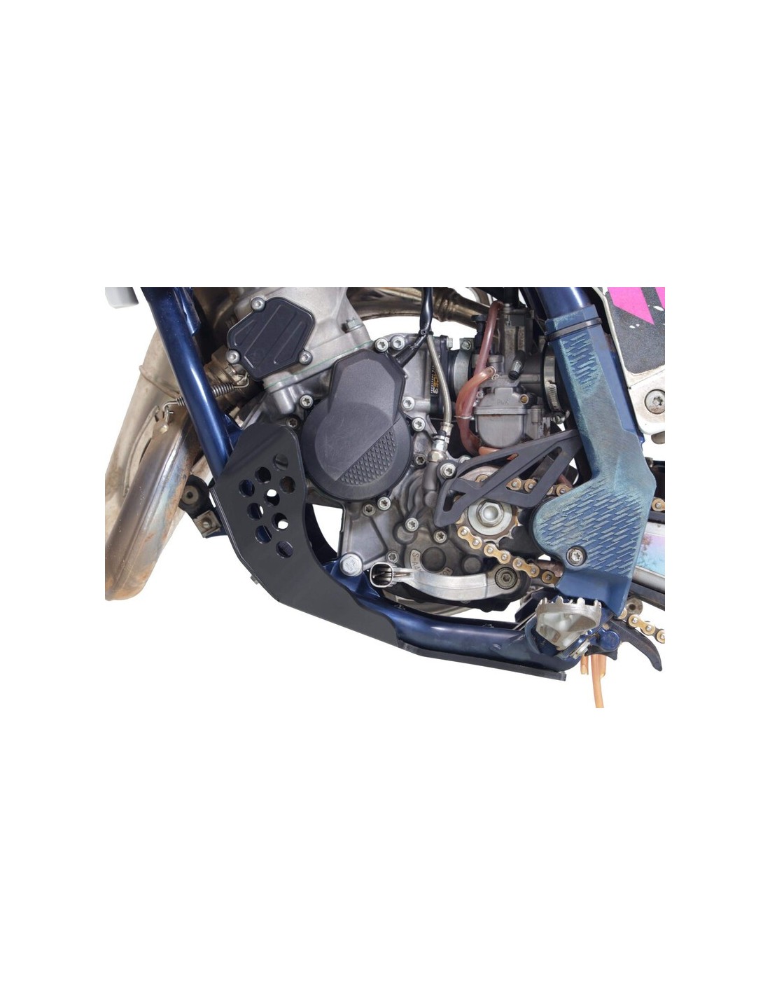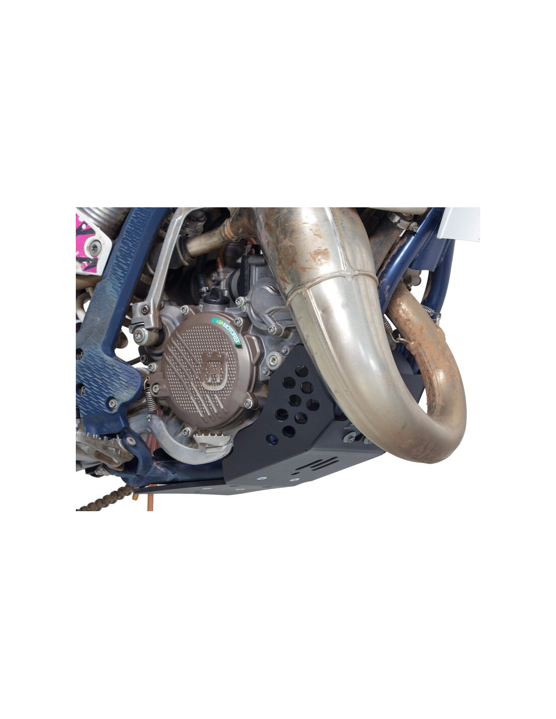 Skid plate for KTM 85SX / Husqvarna TC85 / GasGas MC85 - Weight: 0,65Kg - The HDPE plastic skid plate is designed for a motocross and supercross use. Made of 6mm thick polyethylene plastic, the skid plate covers the subframe and protects the engine and the cases from projections. Contrary to aluminum, HDPE absorbs impacts, does not undergo deformations, does not generate vibrations and is 30 to 40% lighter. This model is also available in blue (AX1771) and orange (AX1769) and only fits KTM 85SX, Husqvarna TC85 et GasGas MC85. WARNING this reference is not compatible for all years.