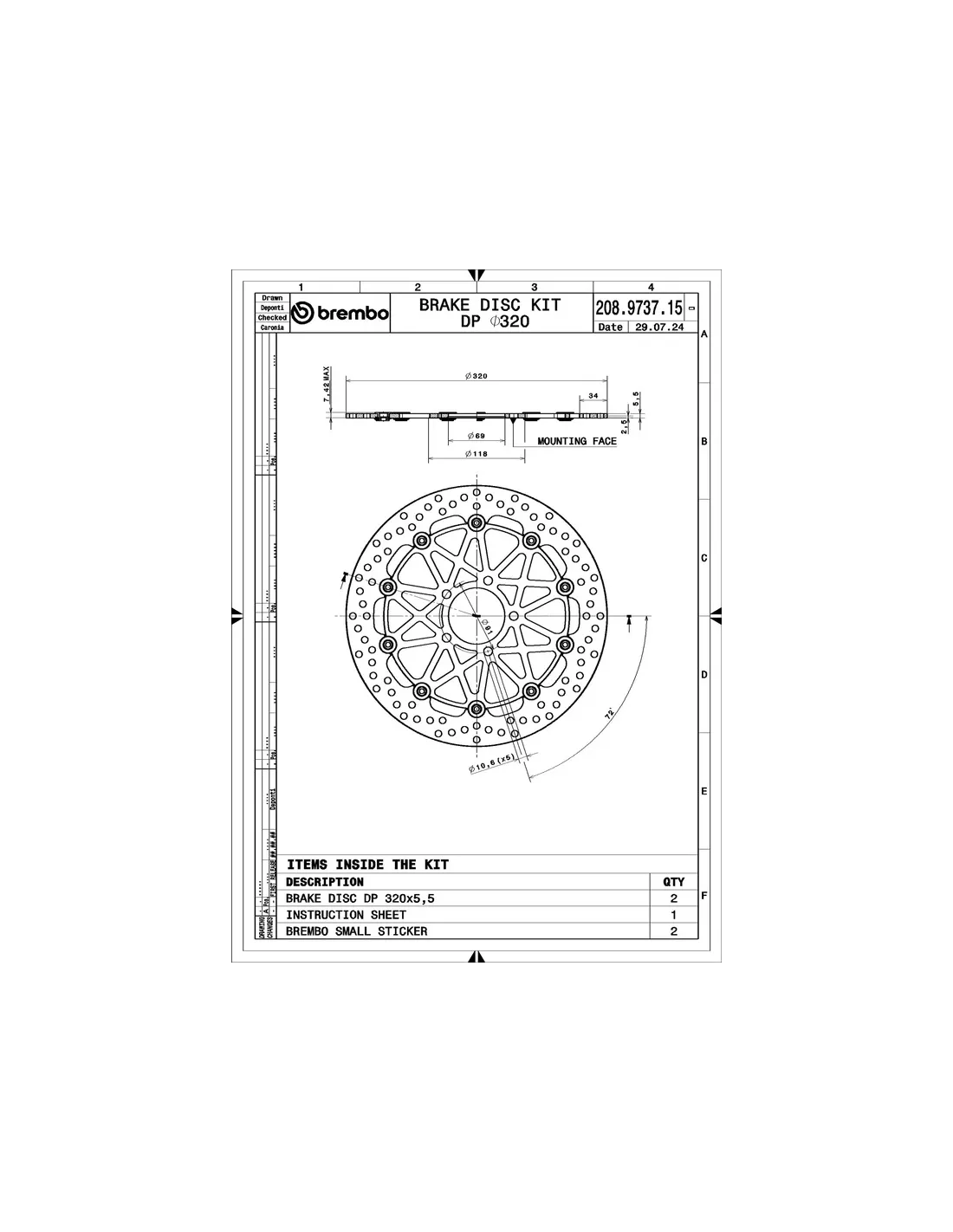 SuperSport discs are available with a braking surface width of 34 mm and thickness increased to 5,5 mm; they are interchangeable with the original discs without requiring any modifications. These fully floating discs are made from heat-treated steel capable of withstanding extreme thermo-mechanical stress, with an aluminium alloy bell machined from the billet.