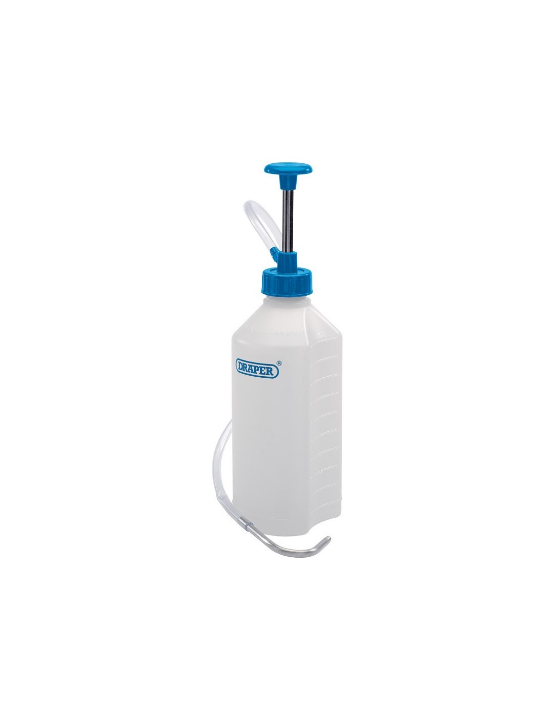 Bomba con pulsador activado por muelle y tubo con acabado metálico, perfecta para un llenado limpio o para acceder a zonas de acceso complicado.