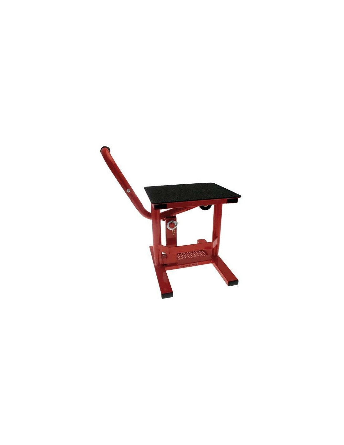 Elevador de moto con bandeja de herramientas y brazo de palanca separable. Plataforma fija, con revestimiento de caucho de 3 mm.