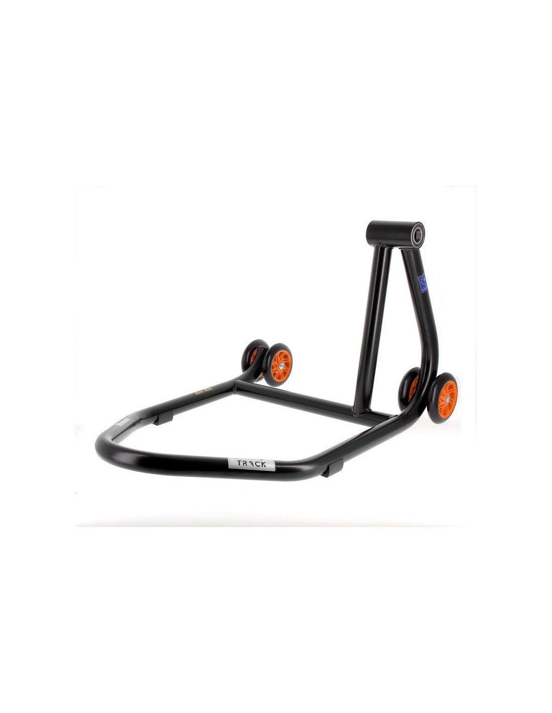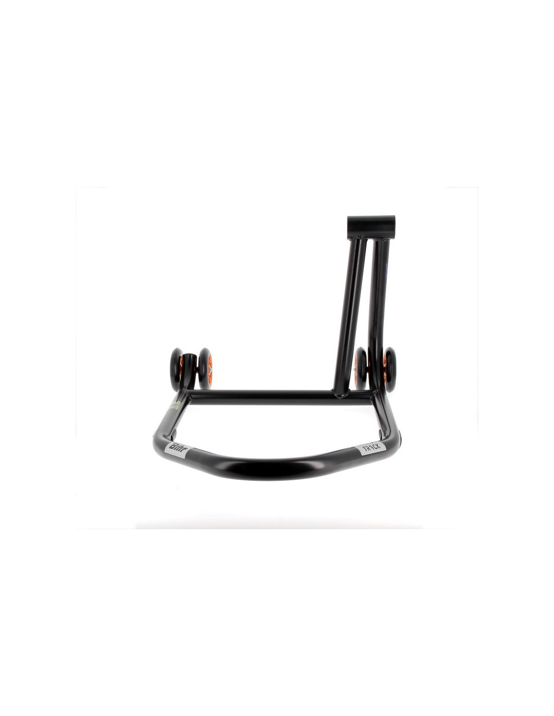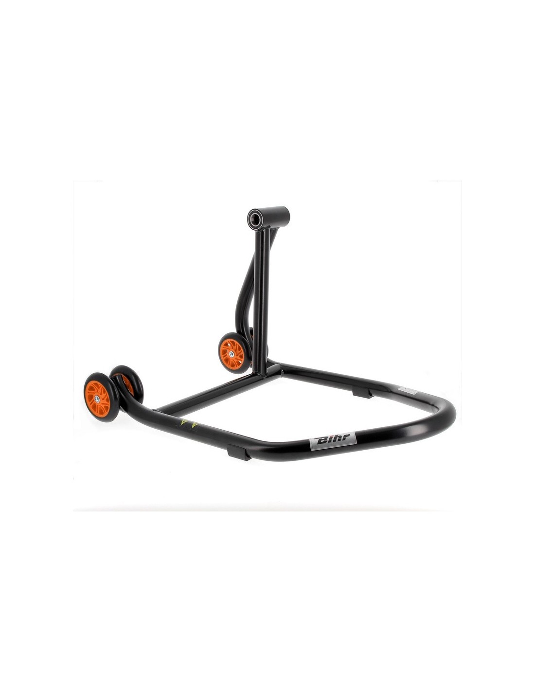 Caballete monobrazo derecho BIHR Home Track color negro mate y ruedas naranjas