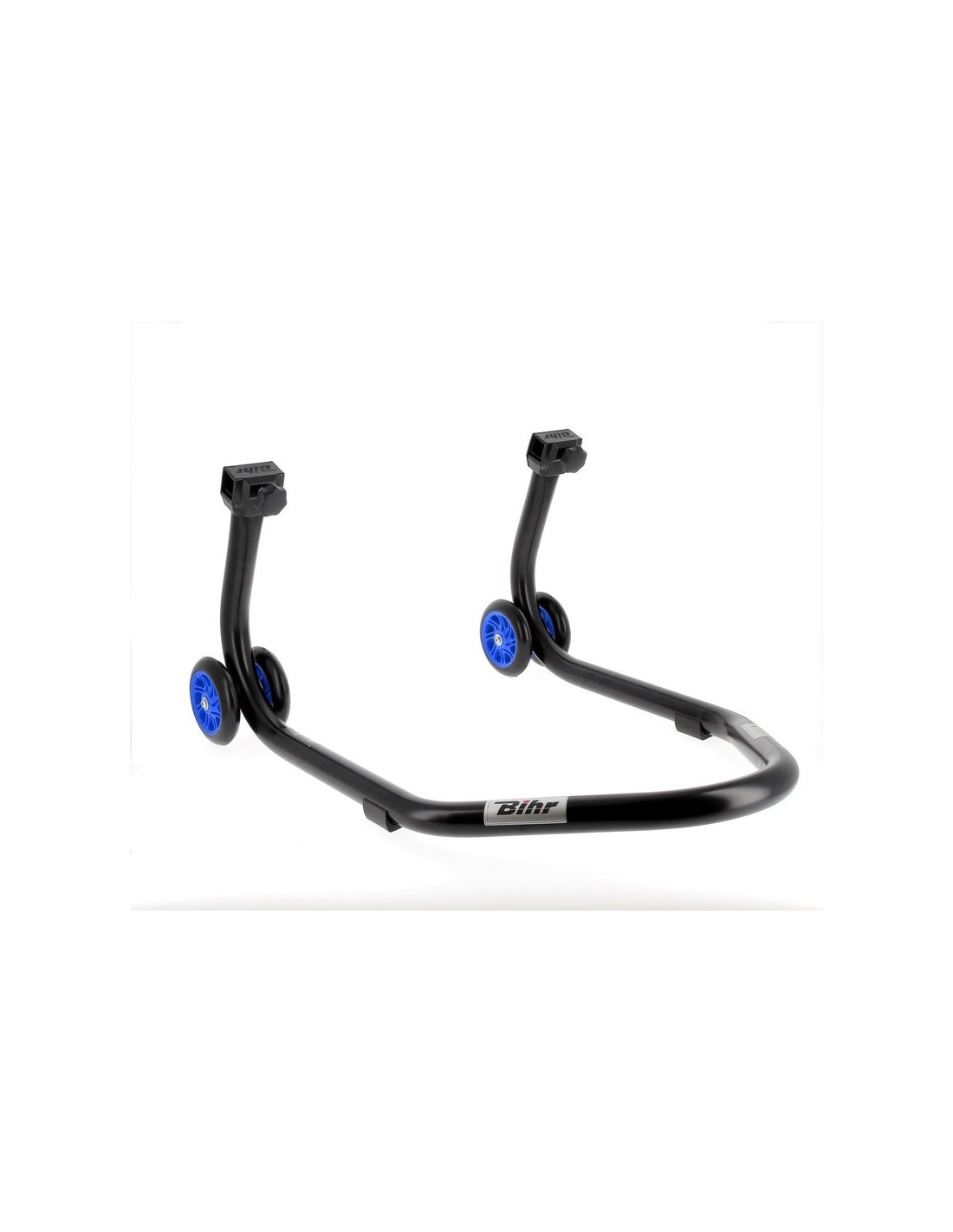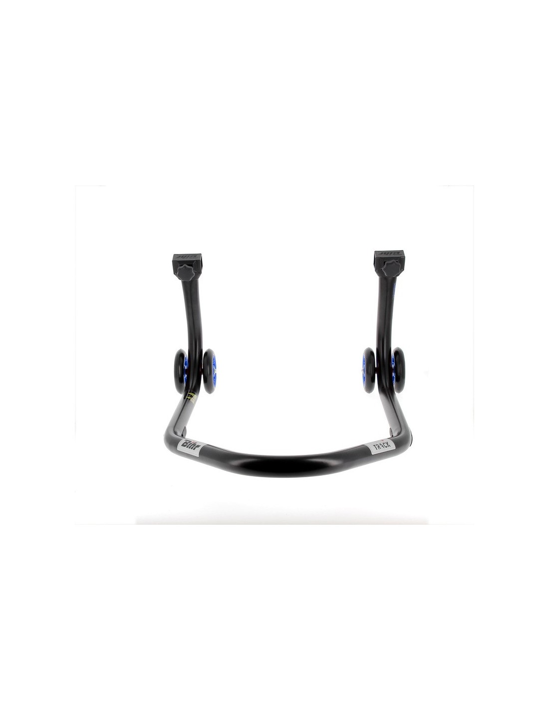 Caballete trasero BIHR Home Track soporte en "V" color negro mate y ruedas azules