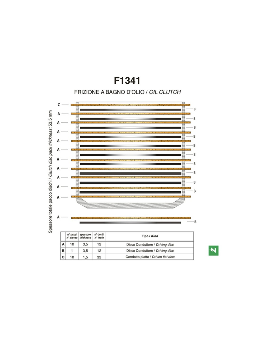 - Espesor total del paquete de discos 53,5mm