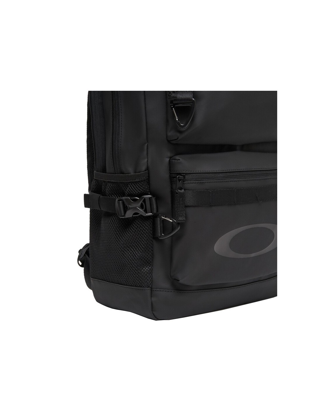 - Logotipo Ellipse de Oakley en la parte frontal de la mochila y en los tirantes