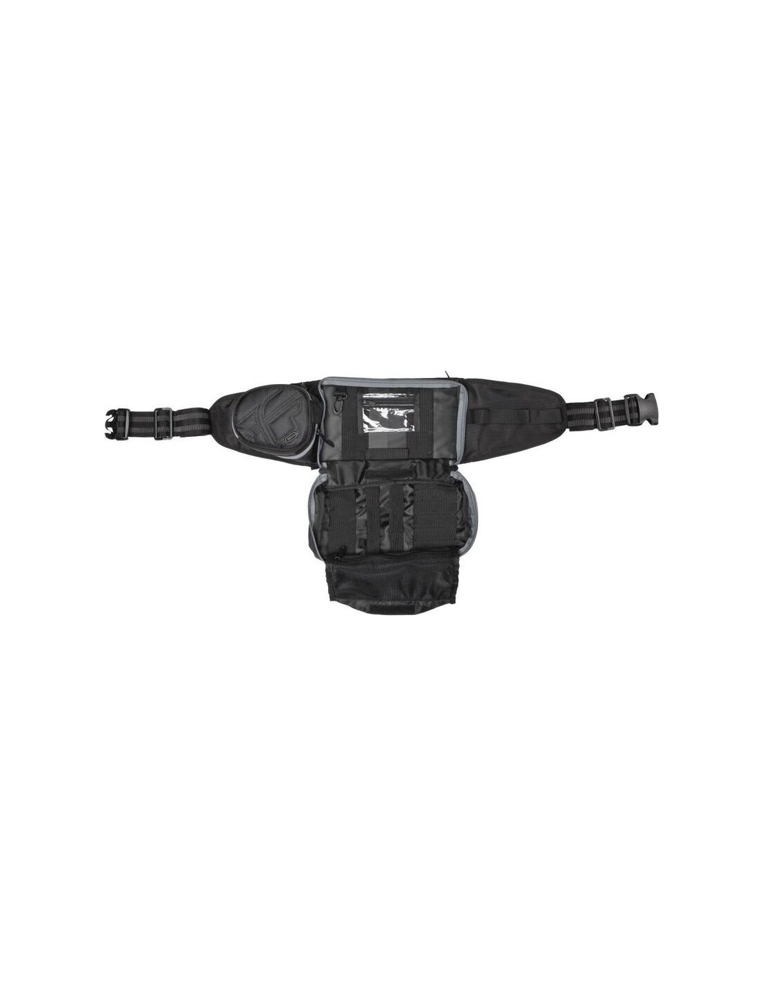 - Compartimento para herramientas con bucle para llaves, bolsillo de plástico transparente para tornillos, bolsillo de malla abatible y correas elásticas diseñadas específicamente para guardar las herramientas básicas necesarias para arreglar tu moto en el camino