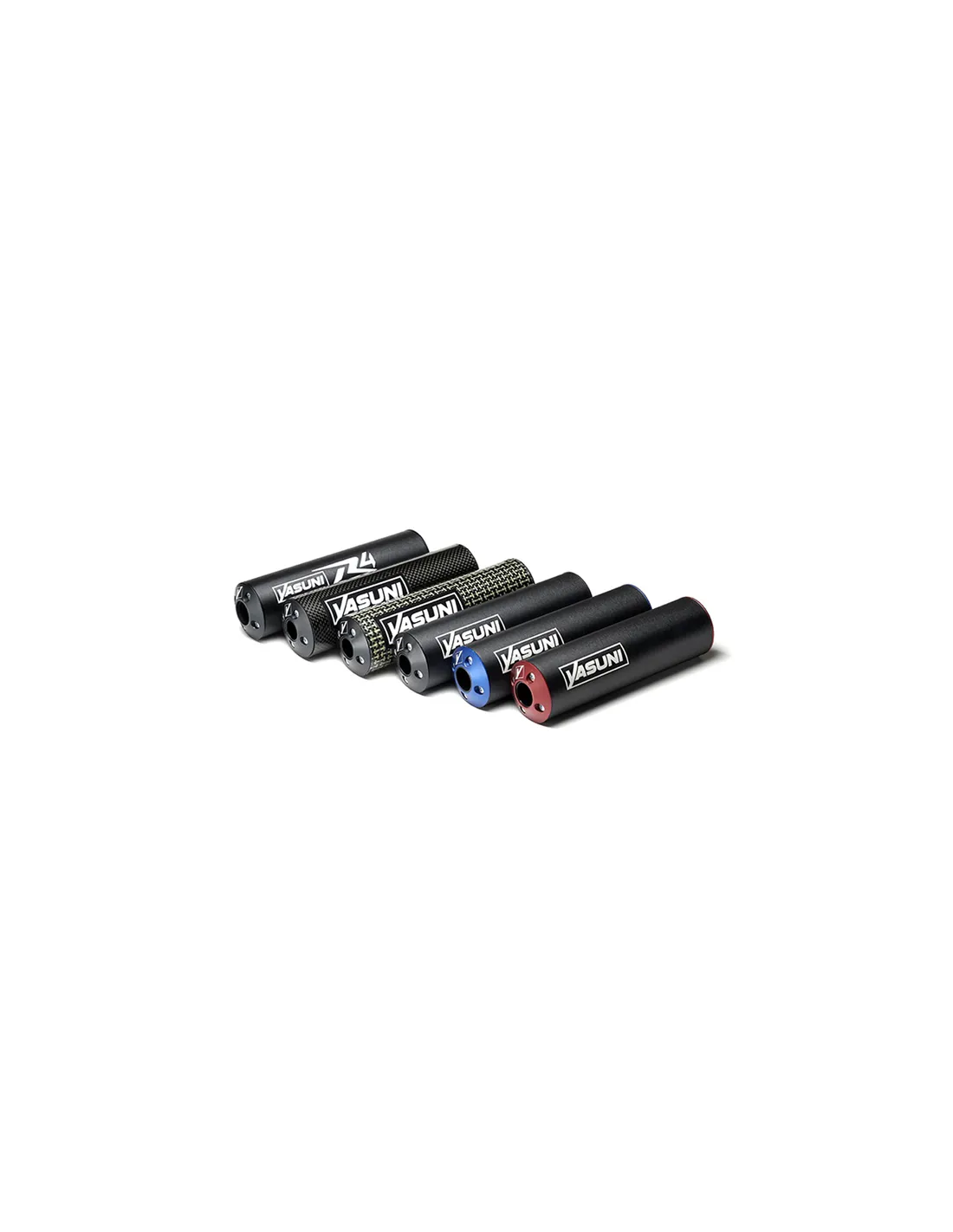 Viene equipado con un silenciador de aluminio. También disponible en Rojo, Negro, Carbono y Carbono/Kev.