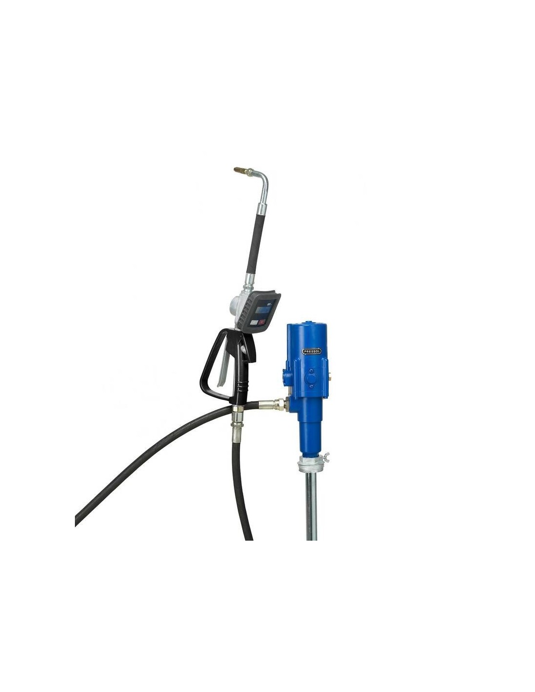 Kit de distribución neumática de aceite para bidones de 200 / 220 L.  Contiene:  Bomba de aceite neumática 3:1, con caudal de 20 l/minEmpuñadura con contador digital (totalizador parcial y total), con protección de esfera de goma, ac""""