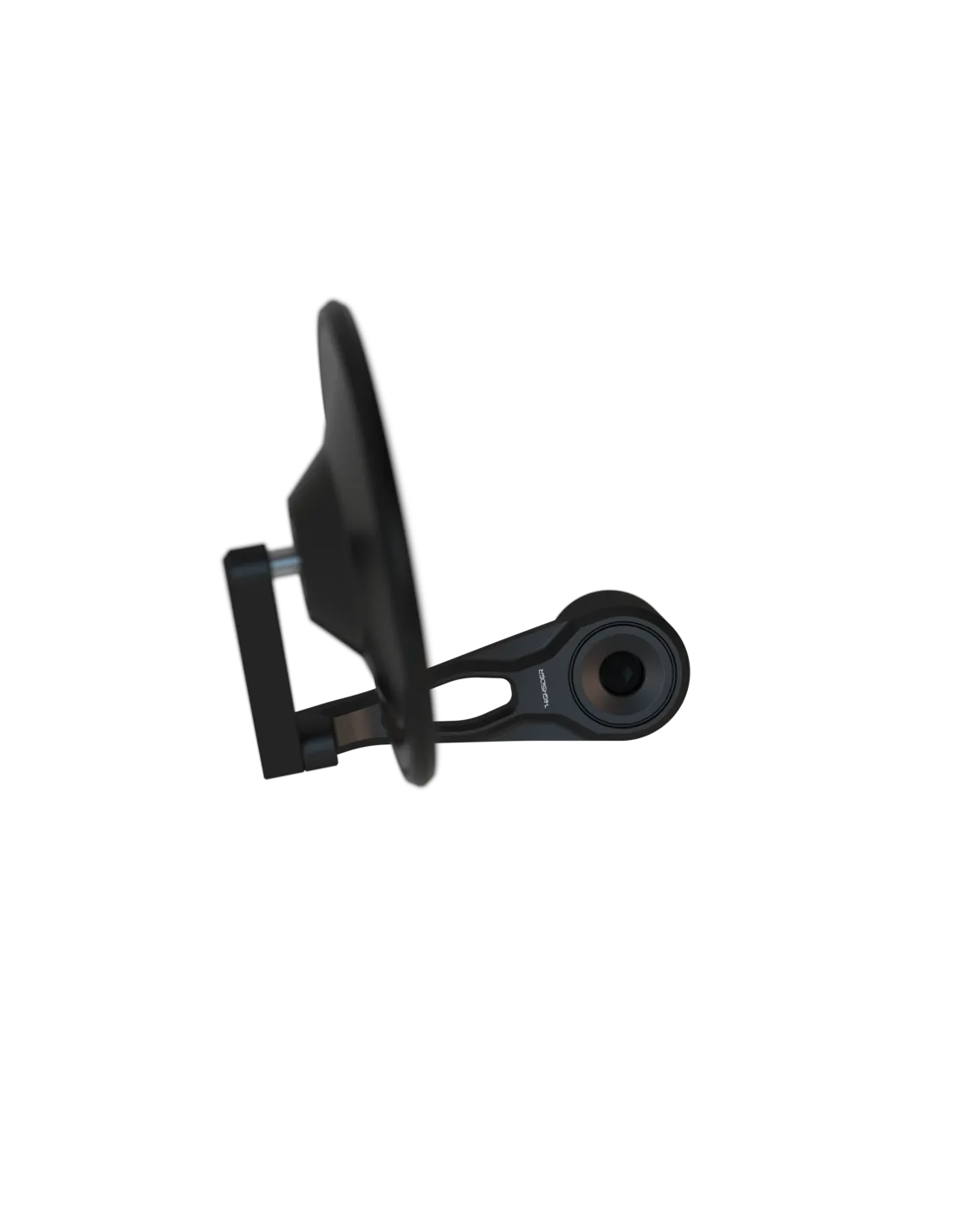 El cabezal del espejo está hecho de plástico de alta calidad y tiene un acabado mate, otorgándole una apariencia elegante que combina perfectamente con el brazo del espejo de aluminio anodizado mate negro y granallado.