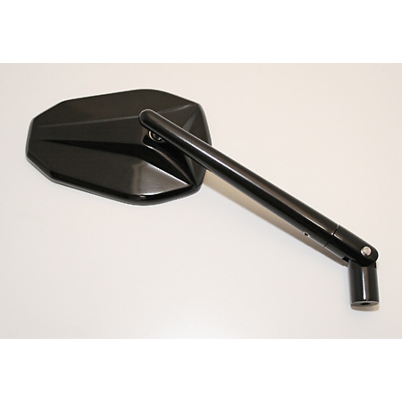 Elegante retrovisor de carenado con carcasa de aluminio anodizado negro y brazo ajustable y giratorio. Gracias al uso de una segunda articulación en el brazo, existen posibilidades de ajuste adicionales para aumentar la seguridad.