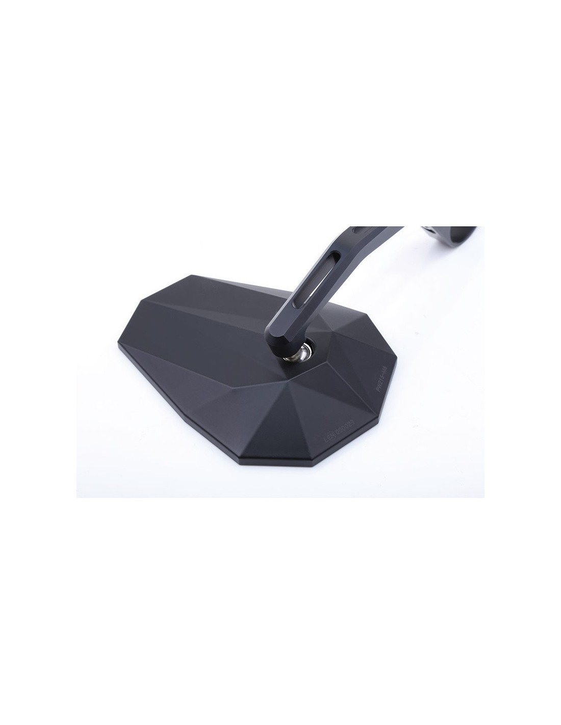 El característico diseño stealth, conocido por la tecnología militar stealth, distingue a este retrovisor de gran forma y calidad. Combinado con el color negro mate, la carcasa del retrovisor de plástico de alta calidad, con sus elementos angulares, tiene un aspecto llamativo. Otros acentos visuales se encuentran en el brazo del retrovisor fabricado en aluminio, que está equipado con deportivas ranuras de ventilación y optimiza además la aerodinámica.