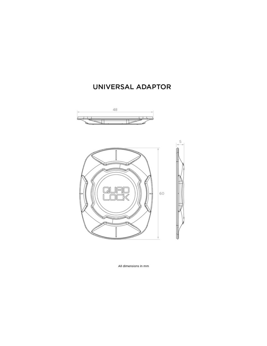 Con sólo 5 mm de grosor, el adaptador universal Quad Lock® se ajusta perfectamente a la parte trasera de los smartphones y las carcasas.