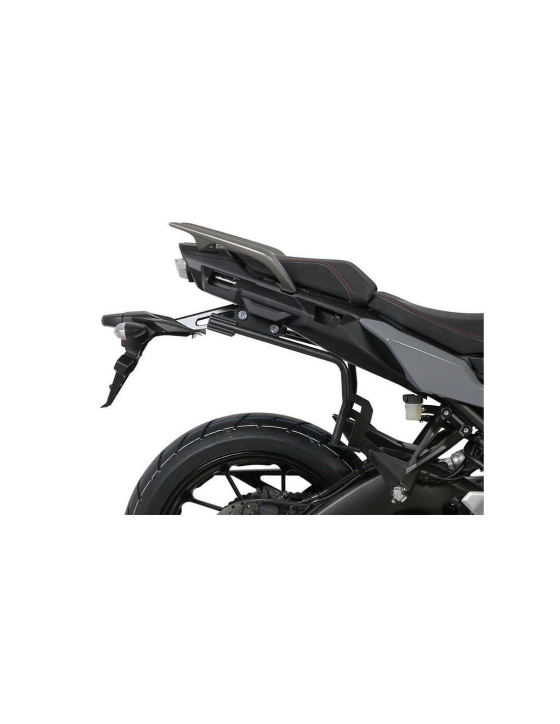 - Diseño Integrado: El kit 3P está mucho mejor integrado con la motocicleta. El típico bastidor rectangular se reduce a un solo brazo que sostiene los tres puntos (3P) necesarios para fijar la maleta lateral.
