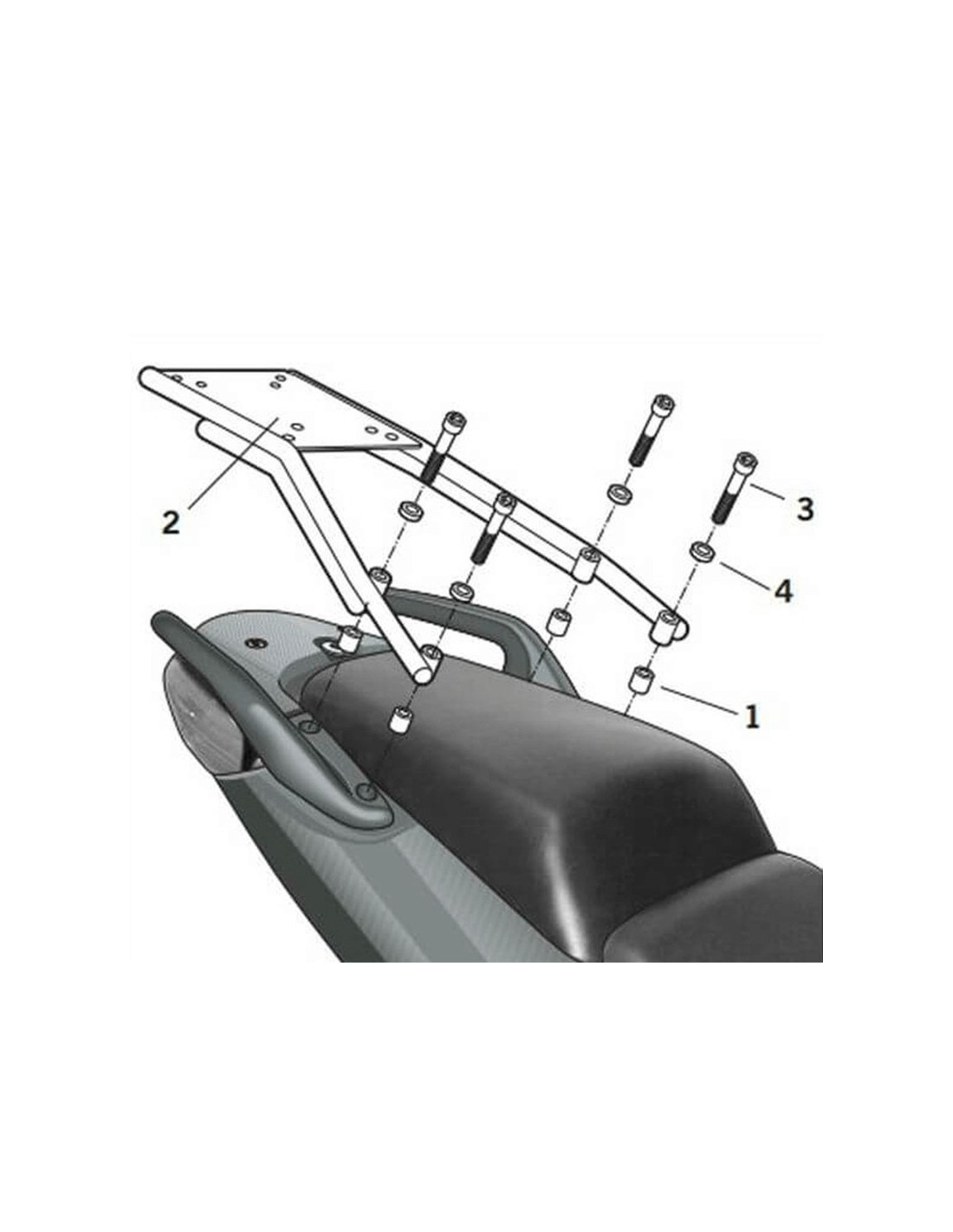 Para el montaje del top case en la moto es necesario añadir a este kit la platina que va incluida dentro de la maleta SHAD.