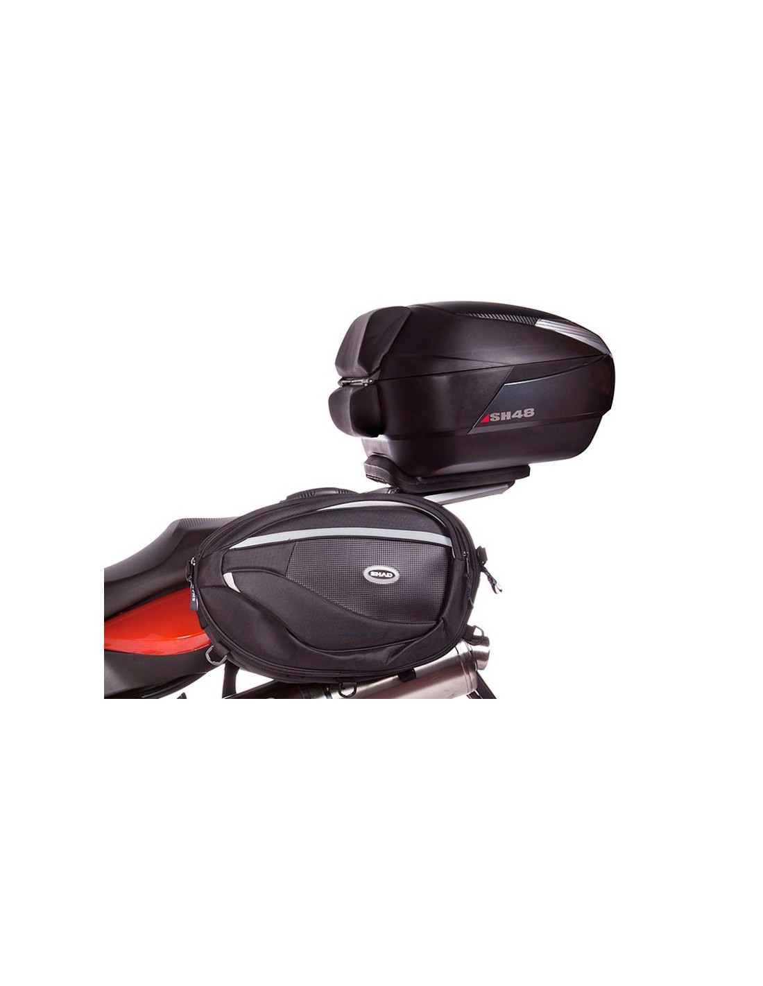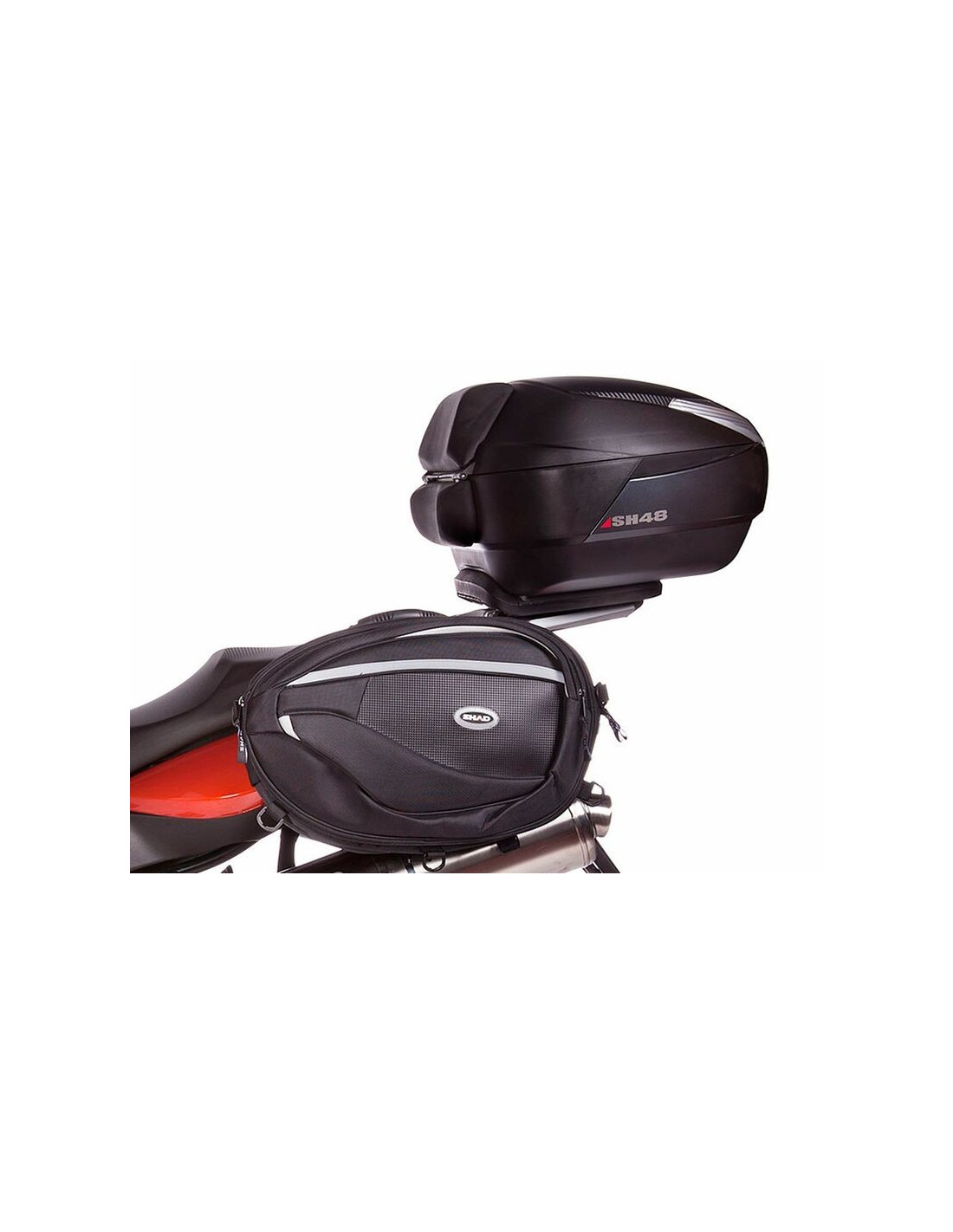 Para el montaje del top case en la moto es necesario añadir a este kit la platina que va incluida dentro de la maleta SHAD.