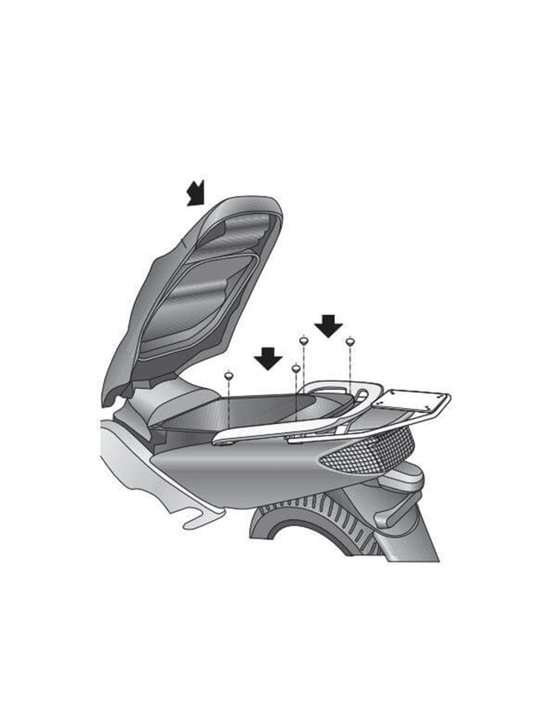 Para el montaje del top case en la moto es necesario añadir a este kit la platina que va incluida dentro de la maleta SHAD.