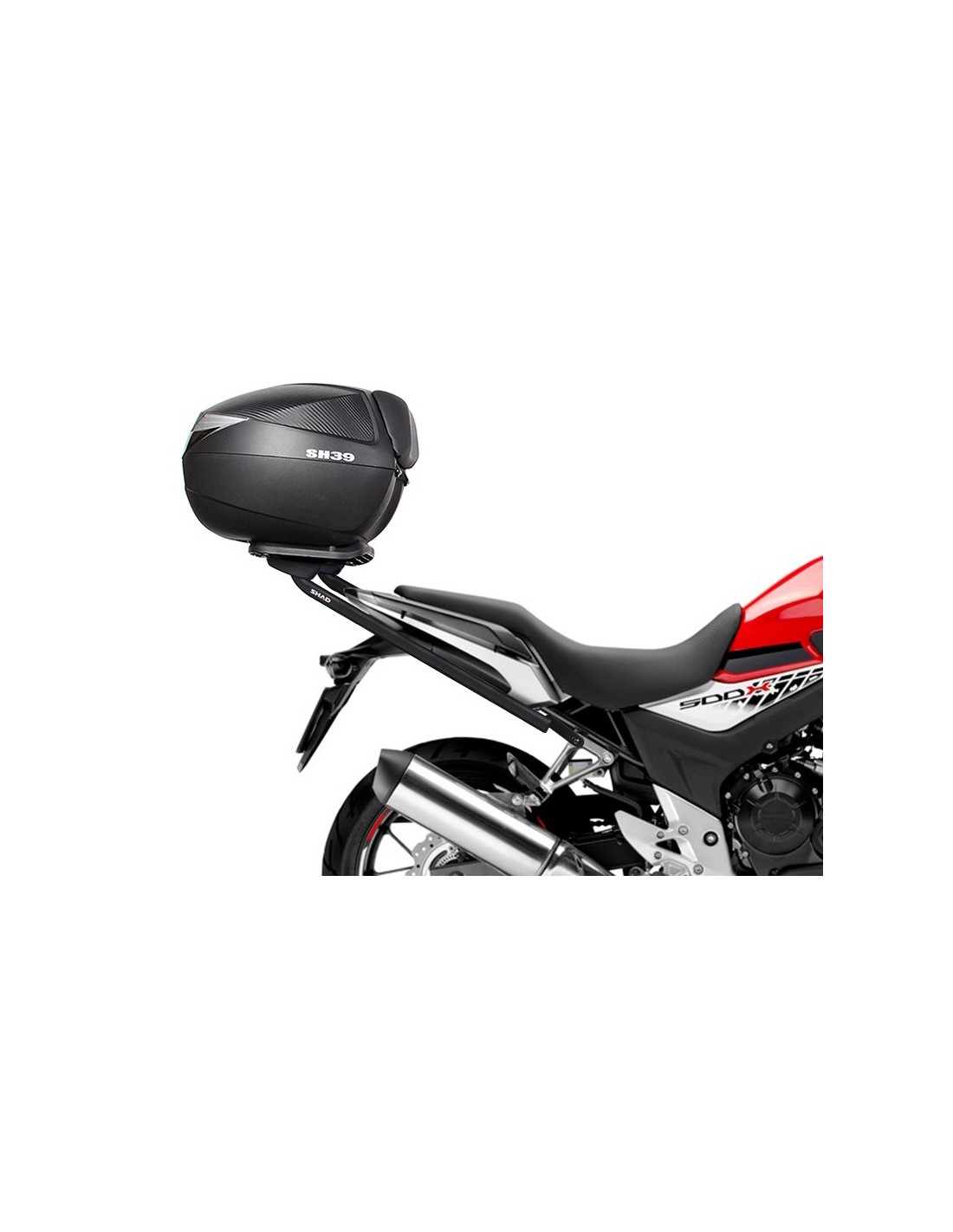 Para el montaje del top case en la moto es necesario añadir a este kit la platina que va incluida dentro de la maleta SHAD.