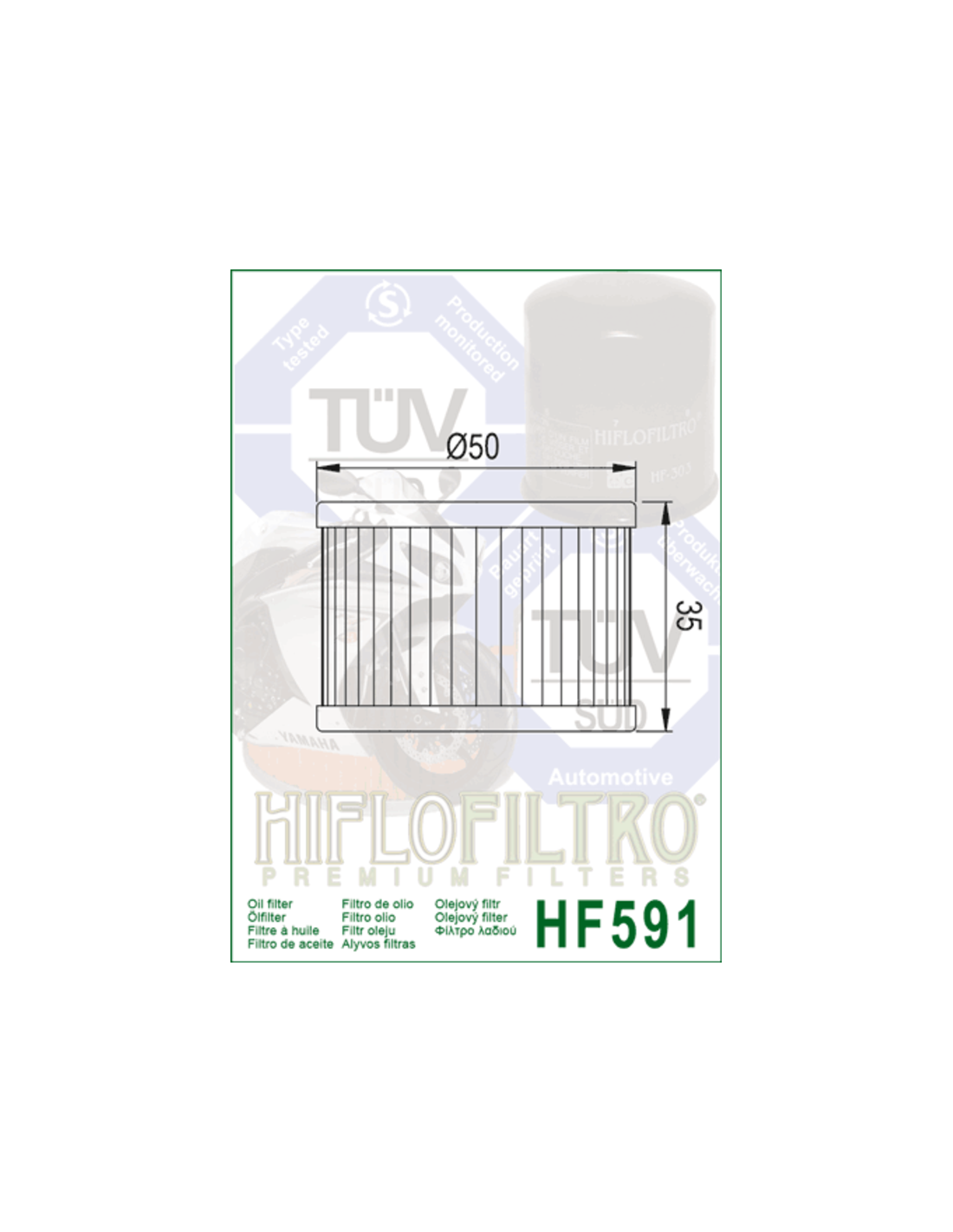 Hiflofiltro es el primer y único filtro de aceite para motocicletas aprobado por la TÜV. Construidos con los mejores materiales disponibles, todos los filtros de aceite Hiflofiltro cumplen o superan los niveles de rendimiento del equipo original. Disponible para modelos de calle, scooter, motocross, enduro, ATV, UTV, fueraborda marino y motos de nieve.
