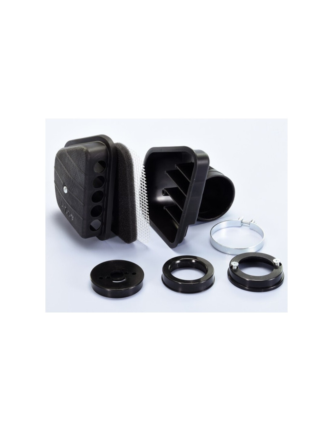En el interior del kit se incluyen tres bridas distintas para fijar el filtro en todos los carburadores Polini CP y en los carburadores Dell’Orto SHB –SHBC específicos para Vespa 50 Special y 125 Primavera ET3.