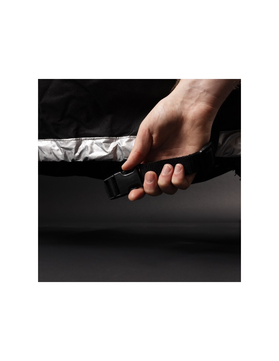 • Las correas abdominales delanteras y traseras mantienen la cubierta firmemente en su lugar