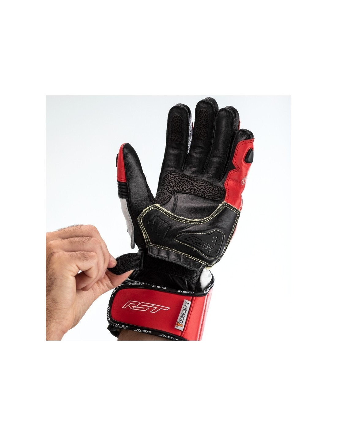 Fabricado tanto con piel de vacuno plena flor como con piel de canguro, el guante incorpora un Protector de Nudillos de Carbono CE Nivel 1 para protección contra impactos. La fibra de aramida en las costuras y el interior de la palma, junto con la piel de canguro de doble capa y un deslizador RST en la palma, protegen la palma en caso de deslizamiento a alta velocidad, mientras que el doble cierre de la muñeca y el puño ofrecen un ajuste seguro. El forro reforzado con aramida en el resto del guante evita desgarros, y los dedos elásticos unidos evitan el "enrollamiento de los dedos" sin afectar al alcance ni a la flexibilidad al cambiar de marcha.