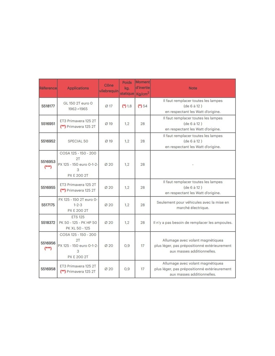 VESPA Primavera 125 2T Para un montaje correcto, es necesario modificar el cableado de encendido suministrado en el kit. - Es necesario sustituir todas las lámparas (de 6 a 12 V), respetando la potencia original expresada en vatios.