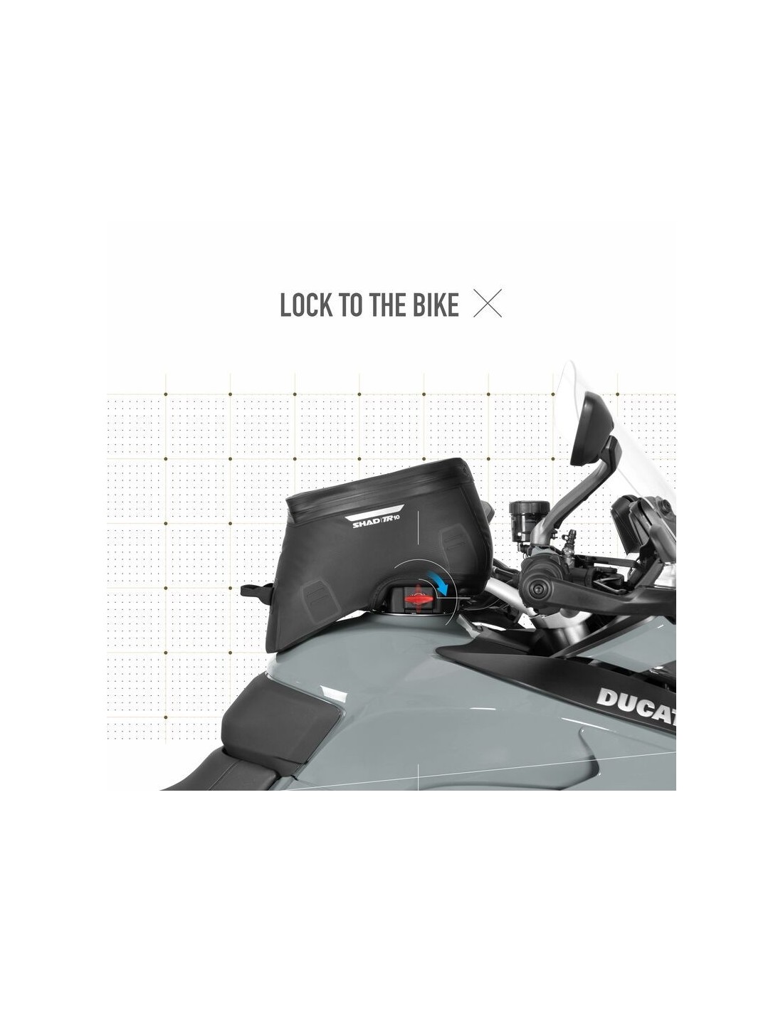Bolsa de depósito TERRA TR10CL con sistema Click System, capacidad de 7 litros, sistema de bloqueo con llave y clasificación de impermeabilidad IPX5.El sistema de fijación Click System (patentado) permite una instalación rápida y sencilla de la bolsa. Su extracción es muy conveniente gracias al botón integrado. Además, el sistema posibilita una perfecta integración estética con el depósito de la motocicleta.