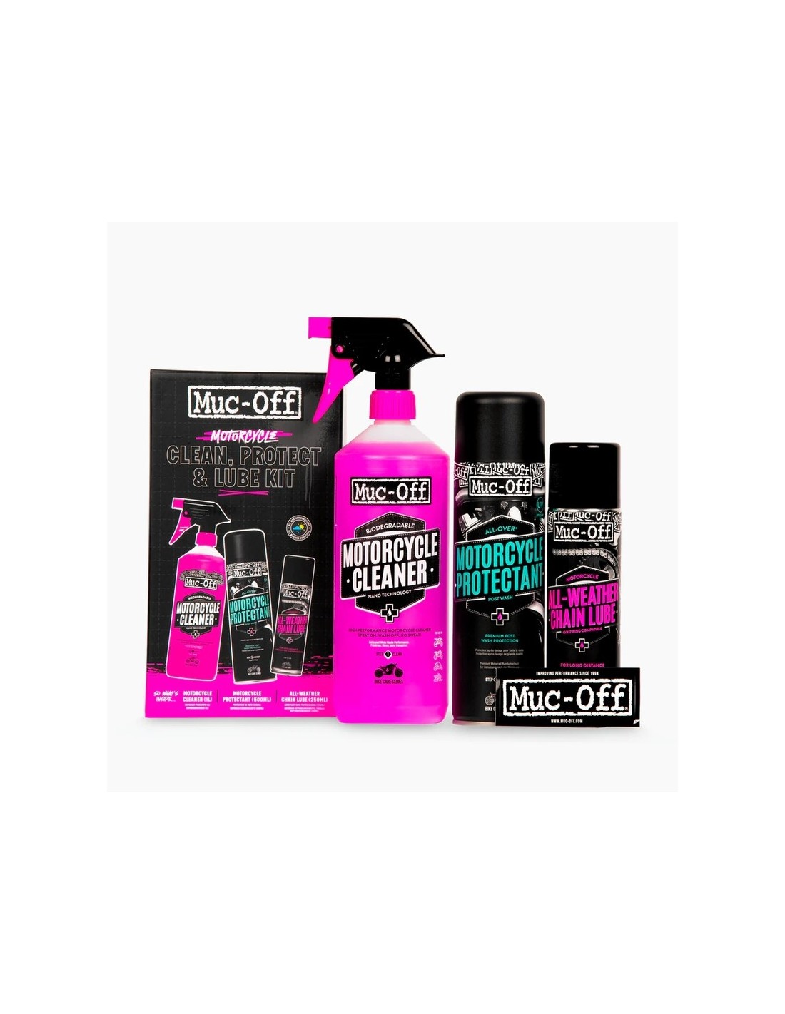 Dominio del cuidado de la motocicleta con el kit Moto Clean, Protect and Lube de Muc-Off.