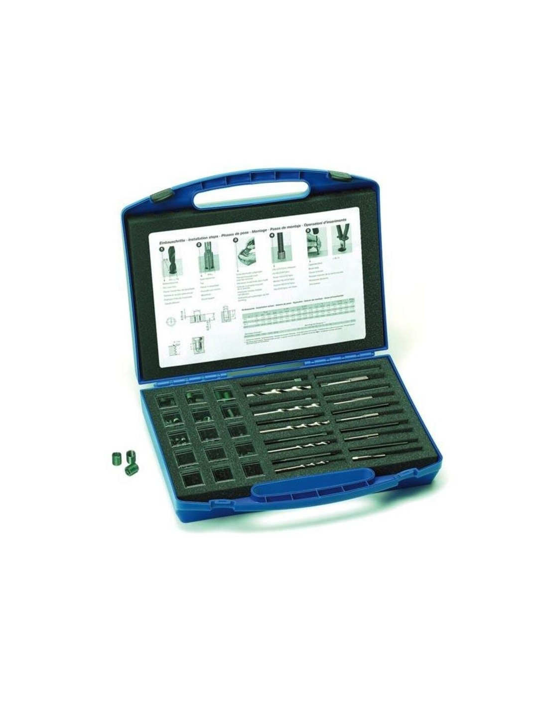 Kit de reparación de roscados ISO de tamaño único. Contiene: Roscas Helicoil® Plus en 3 longitudes distintas Broca (hasta M12 y macho combinado a partir de M14) Macho HSS manual (combinado a partir de M14) Útil para enroscar Rompedor (hasta M12) Roscas de recambio disponibles en bolsas de 10-20 unidades.