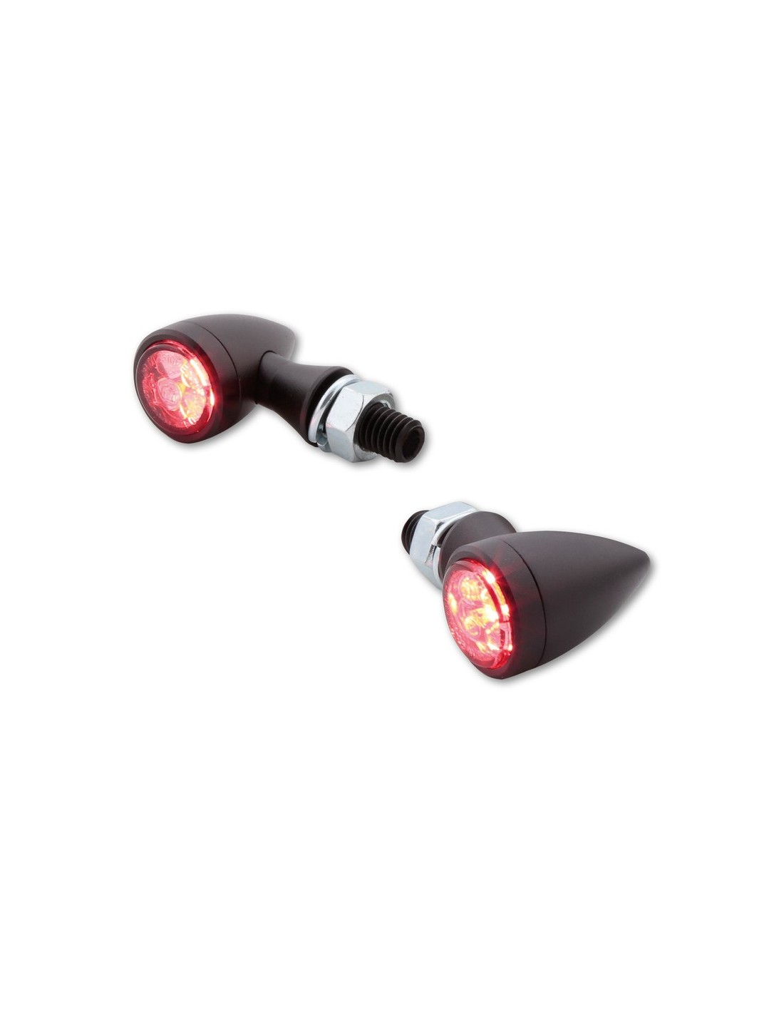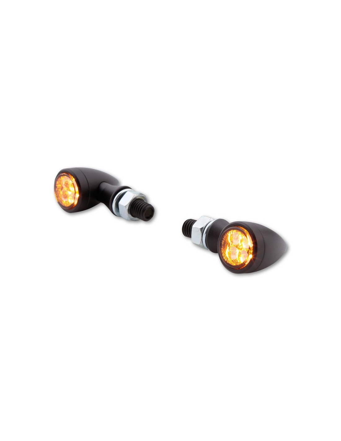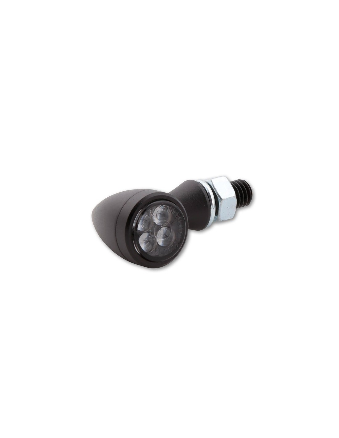 Diseño clásico bullet en cromo con vidrio tintado o también disponible en negro para una apariencia oscura en la moto. Cuando no se utiliza, el señalizador se integra discretamente en el diseño de la moto. En uso, la superficie iluminada por LED produce una señal intermitente armoniosa. La combinación de un diseño homogéneo y la electrónica más avanzada revitaliza la forma clásica del bullet.